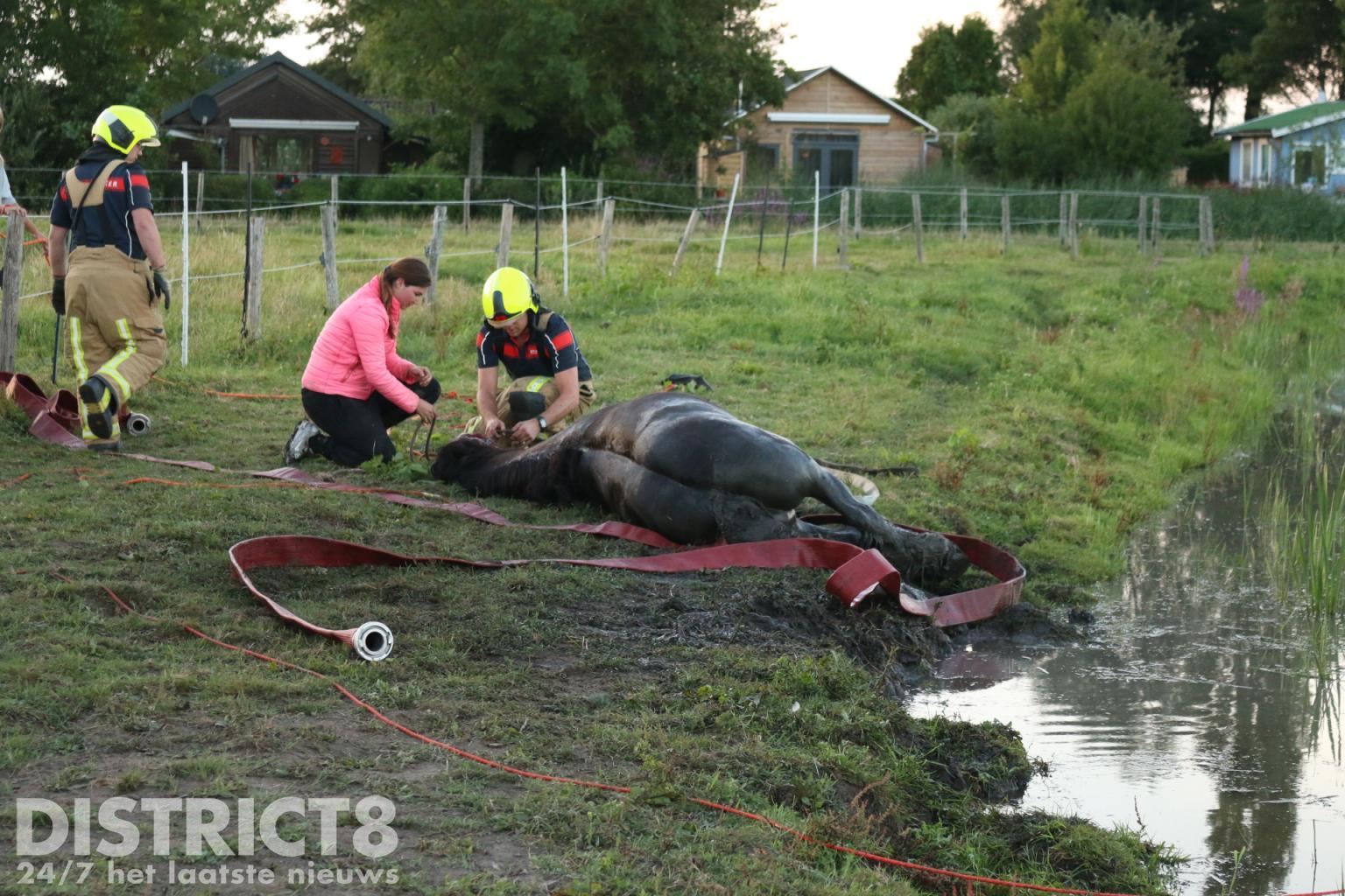 Toen het paard opgemerkt werd, zou hij al enkele uren in het water hebben gelegen. Hij was moe en verzwakt. Toen de brandweer ter plaatse kwam zijn ze direct begonnen aan verschillende pogingen om het dier uit het water te krijgen. Doordat de achterbenen diep in het modder zaten konden de brandweerlieden geen blusslang achter het dier zijn benen plaatsen.