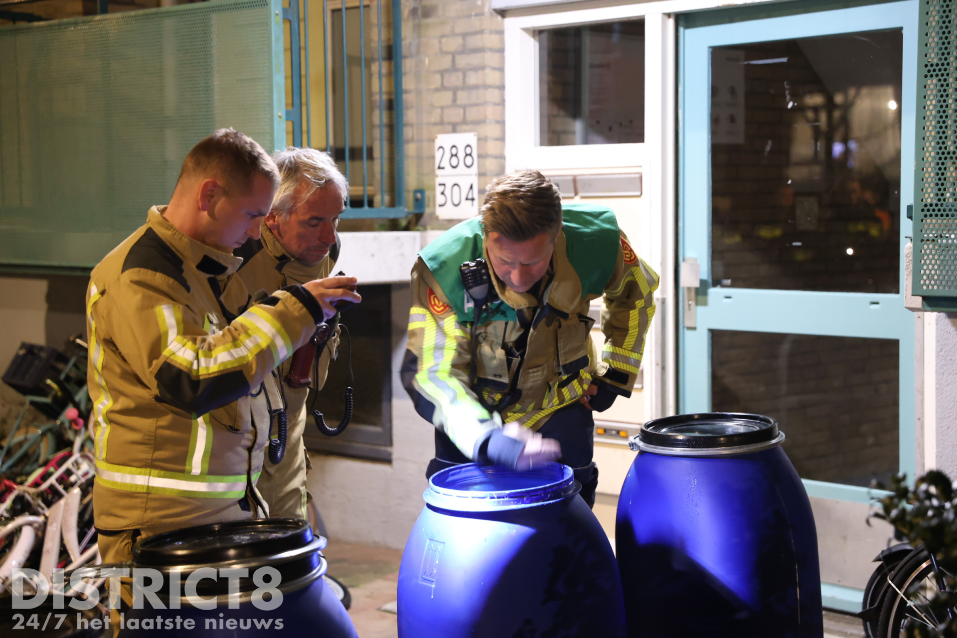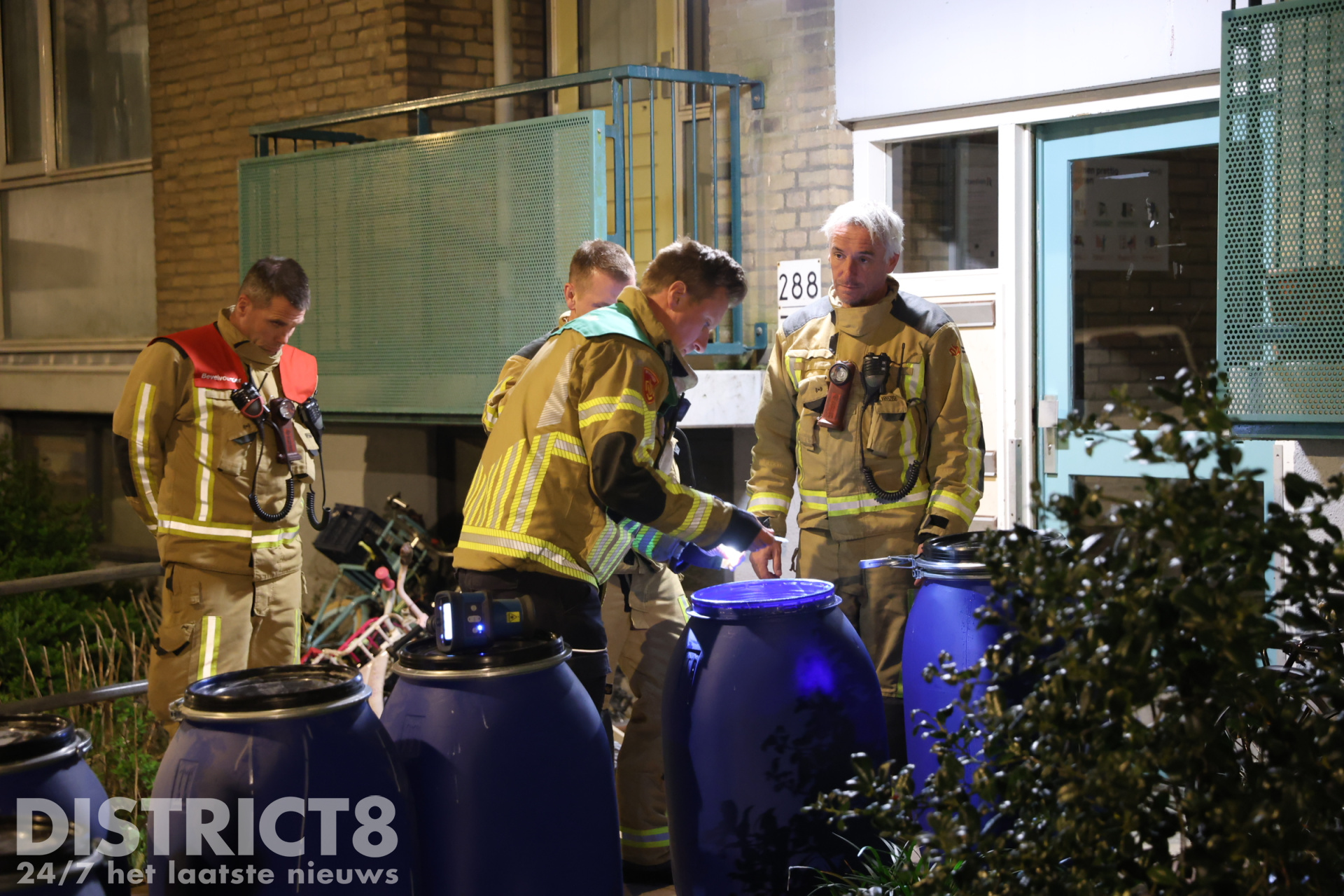 De brandweer heeft onderzoek gedaan en metingen verricht bij de vaten. Uit het onderzoek bleek dat de vaten gevuld waren met benzine en/of diesel. Om veiligheidsredenen heeft de brandweer de vaten uit de keldergang gehaald en op straat geplaatst.