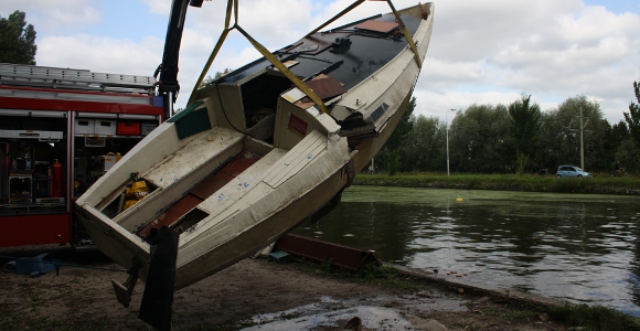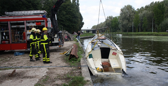 Rijswijk – De brandweer werd zaterdagmiddag gealarmeerd nadat voorbijgangers aan het jaagpad een boot zagen die lag afgemeerd en was gezonken. Omdat de voorbijgangers niet konden uitsluiten dat er iemand in de gezonken boot verbleef hebben ze de brandweer gealarmeerd. De brandweer heeft met een duiker de boot doorzocht. In de boot werd niks aangetroffen. Een hulpverleningsvoertuig van de brandweer is ter plaatse gekomen om met behulp van de kraan de boot uit het water te takelen. Met de nodige moeite kreeg de brandweer de boot langzaam uit het water getakeld. Even leek het mis te gaan toen de spanband door de romp van het bootje brak. Uiteindelijk is de boot veilig op de kant gezet. De politie is op zoek gegaan naar de eigenaar van de boot.