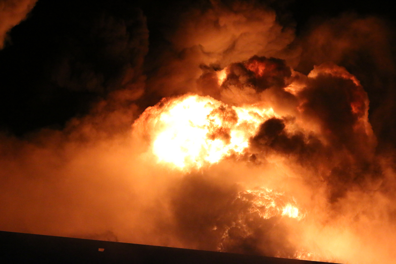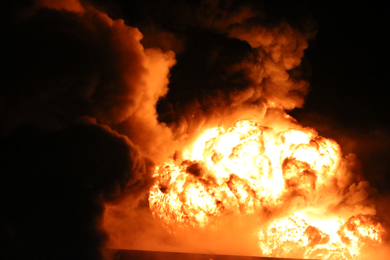 In de omgeving zijn meetploegen bezig om te kijken of er gevaarlijke stoffen zijn vrijgekomen.