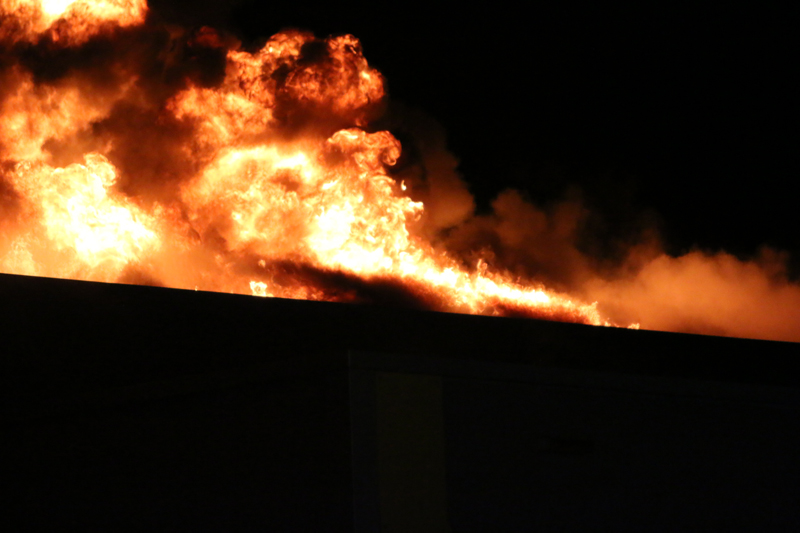 De brand woedde bij aankomst van de brandweer midden in het pand. Het vuur was te heet om het pand te betreden.