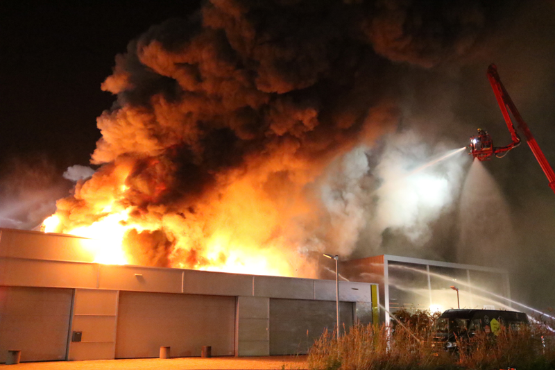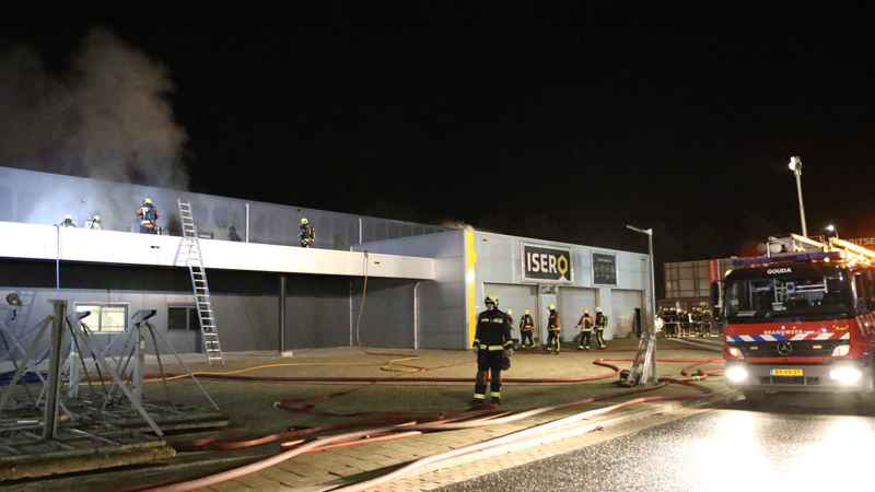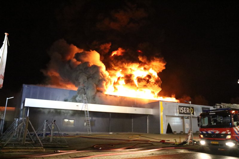 Gouda – In een ijzerwarenhandel aan de Marconistraat in Gouda woedt een grote brand.