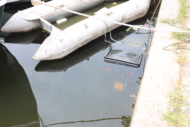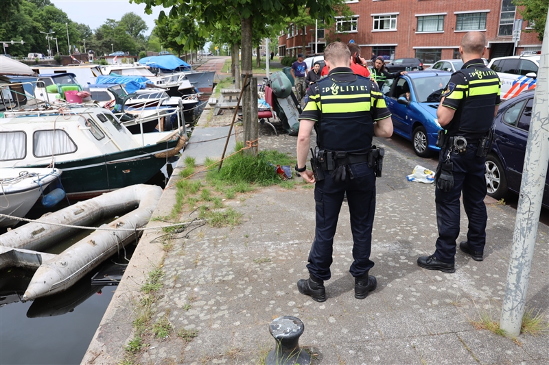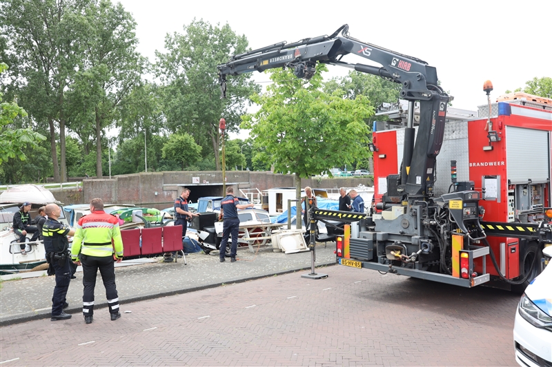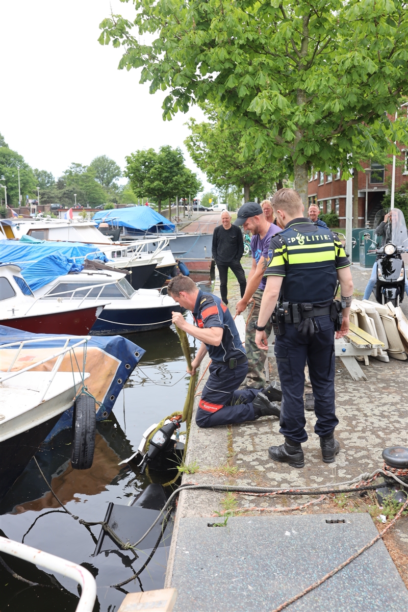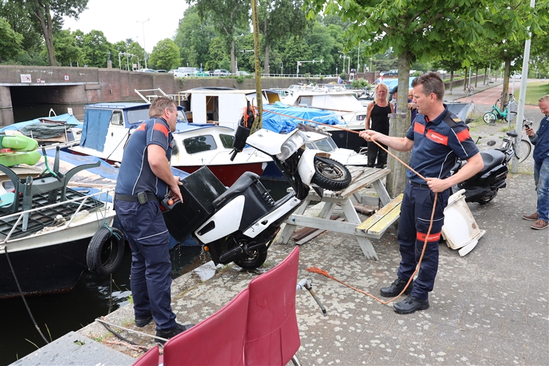 Omstanders zagen de scooter in het water liggen en belde de politie. De politie vroeg direct de brandweer ter plaatse om de scooter uit het water te kunnen halen. De klein kraan van het hulpverleningsvoertuig van de brandweer heeft de brommer netjes op de kade kunnen plaatsen.