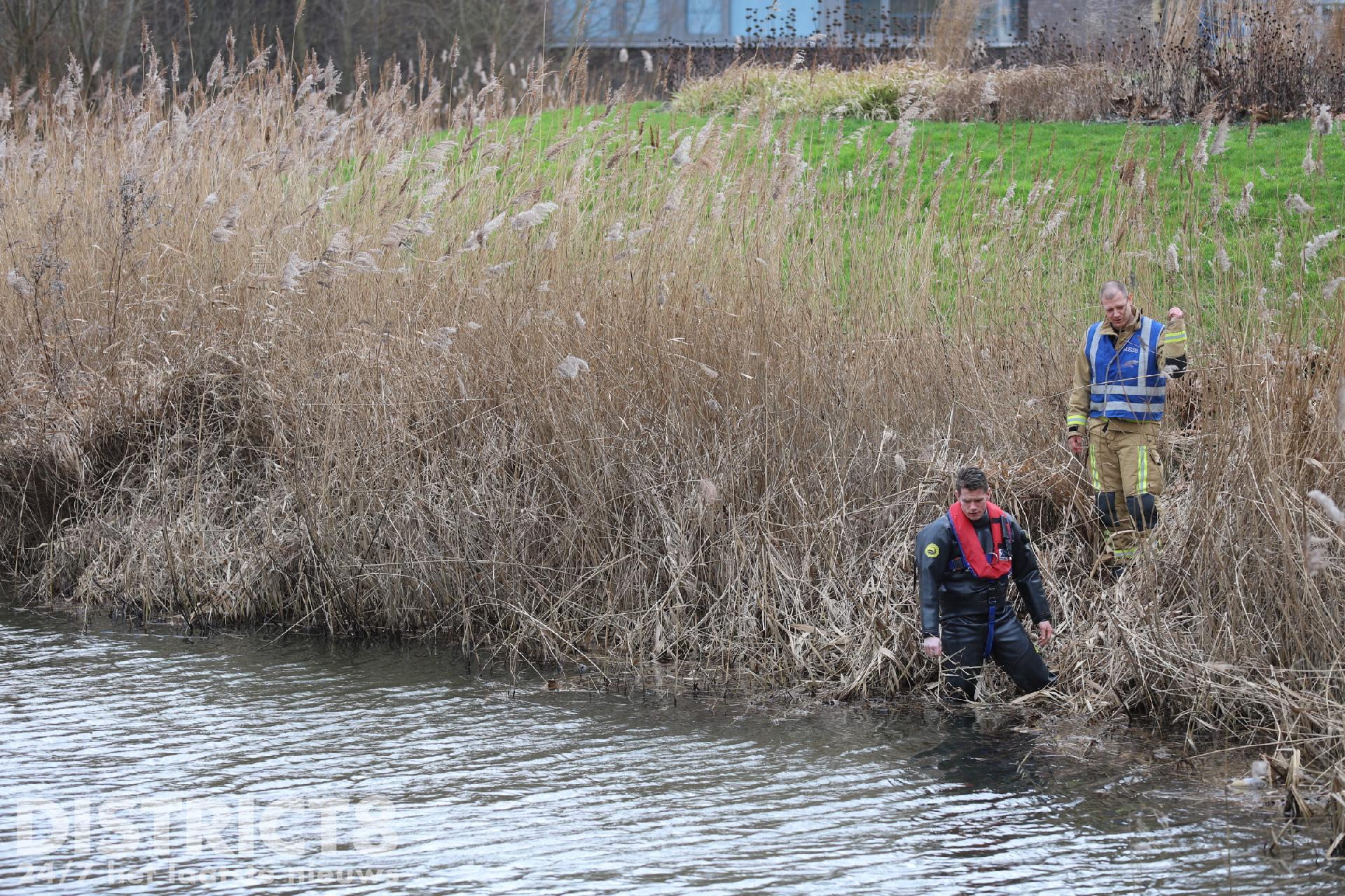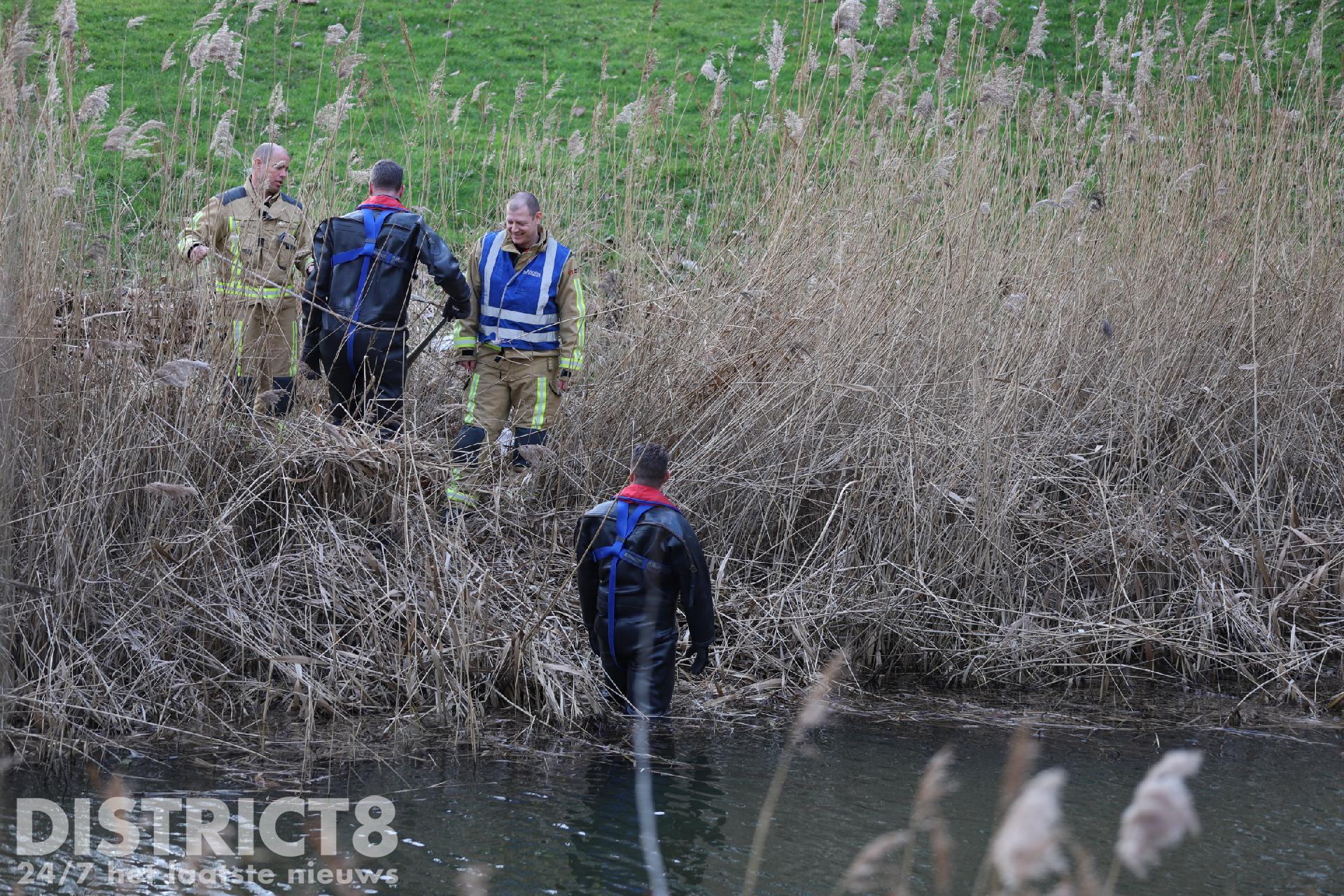 De brandweer kwam met een duikploeg ter plaatse, twee brandweermannen zijn met waadpakken richting het water gelopen, nog voordat er echt gedoken moest worden hadden de brandweermannen de honkbalknuppel gevonden aan de waterkant.