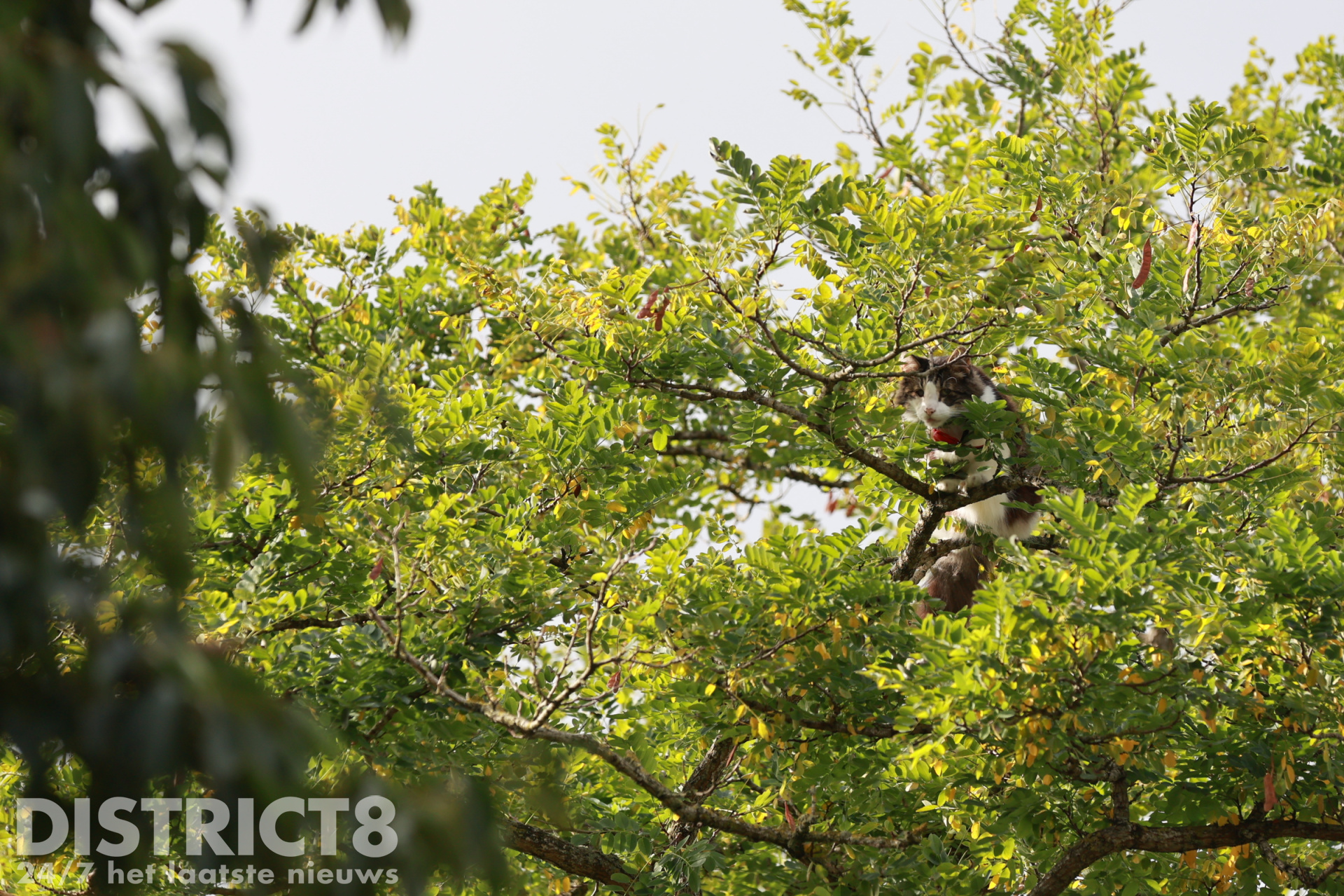 De brandweer rukte maandagmiddag al uit om de viervoeter uit zijn benarde positie te bevrijden. Die poging liep echter op niets uit, waardoor de kat de nacht doorbracht tussen de takken, met een fraai uitzicht over de buurt maar zonder plan om weer af te dalen.