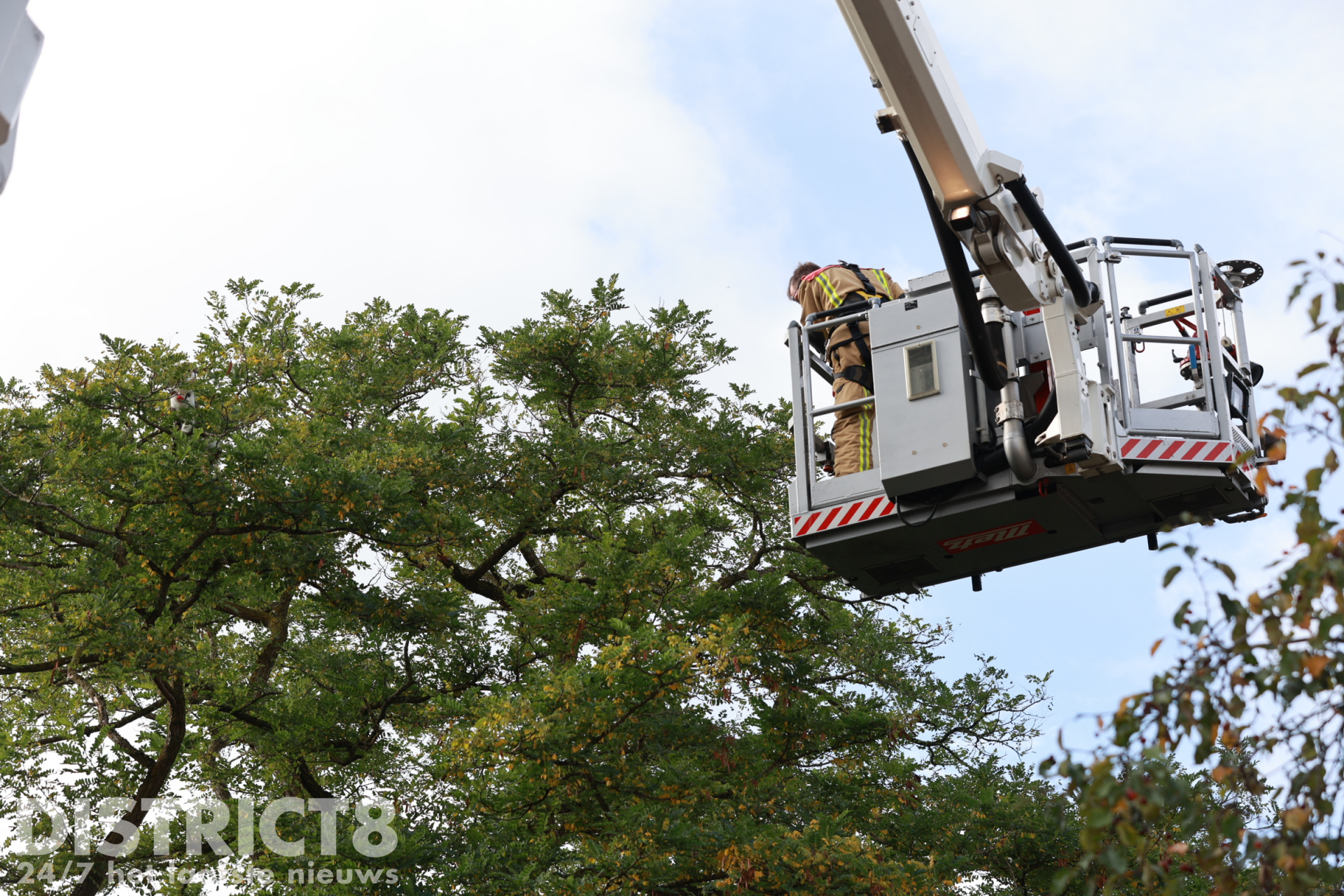 Toen de eigenaar dinsdagochtend zag dat zijn huisdier nog steeds hoog in de boom zat werd opnieuw de brandweer gebeld.