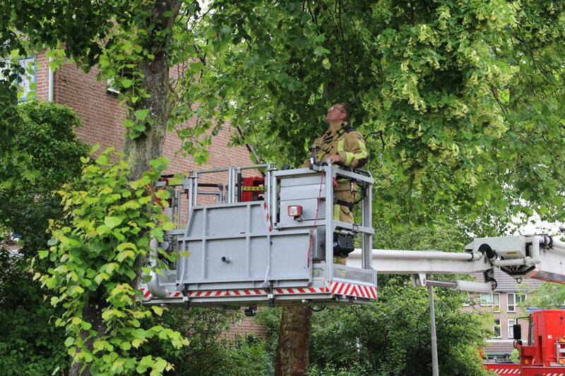 Delft – Aan de Spreeuwenstraat in Delft heeft de brandweer maandagmiddag 21 juni een ontsnapte agapornis uit een boom gehaald.