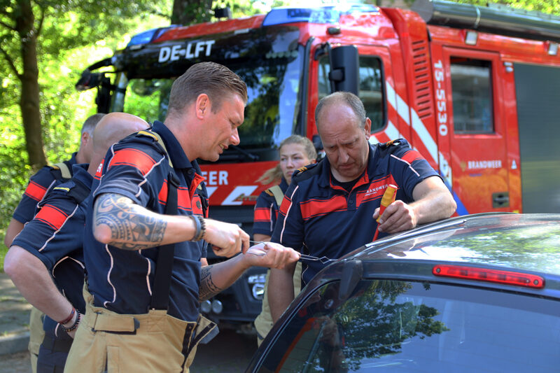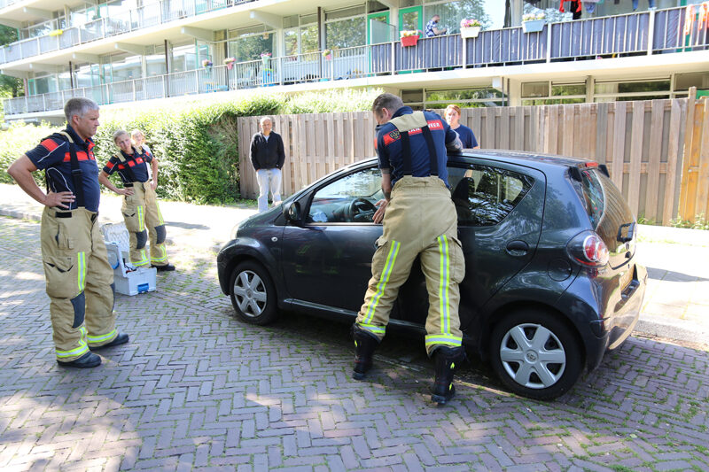 De brandweer kwam ter plaatse. Met een omgebogen ijzeren klerenhanger en een schroevendraaier, was de brandweer erin geslaagd om de deuren van de auto te openen. Na het overhalen van het hendeltje voor de motorkap, was de motorkap geopend.