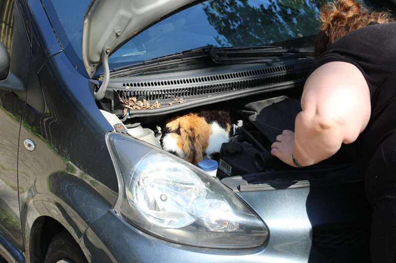 Delft – Op de Pijperring in Delft is donderdagmiddag 24 juni een poes onder de motorkap van een geparkeerde auto geklommen.
