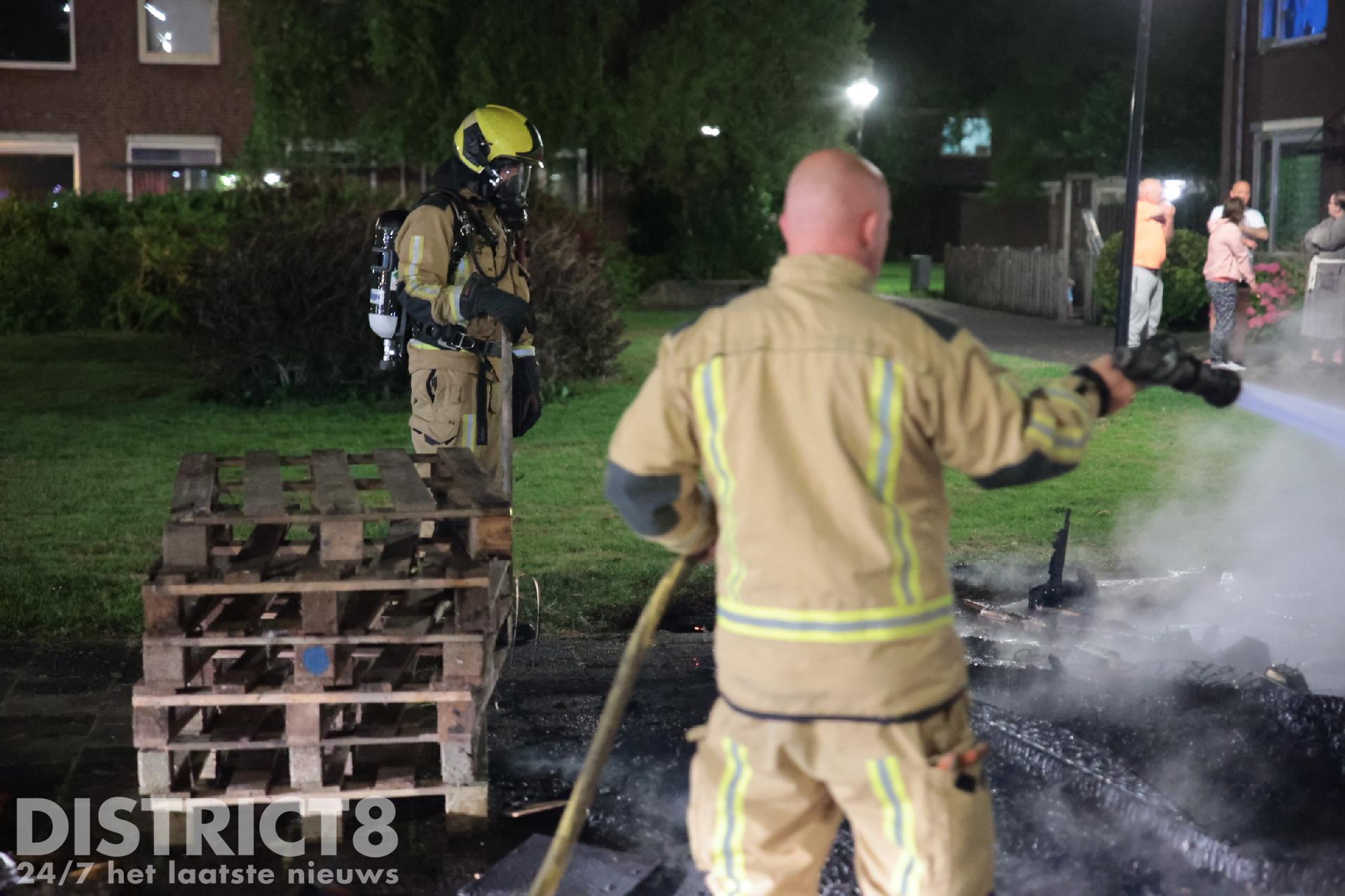 De spuitgasten kwamen met spoed ter plaatse en begonnen direct met het blussen van de brand. Met een hogedrukstraal en een schep konden de brandweerlieden de brand vakkundig blussen.