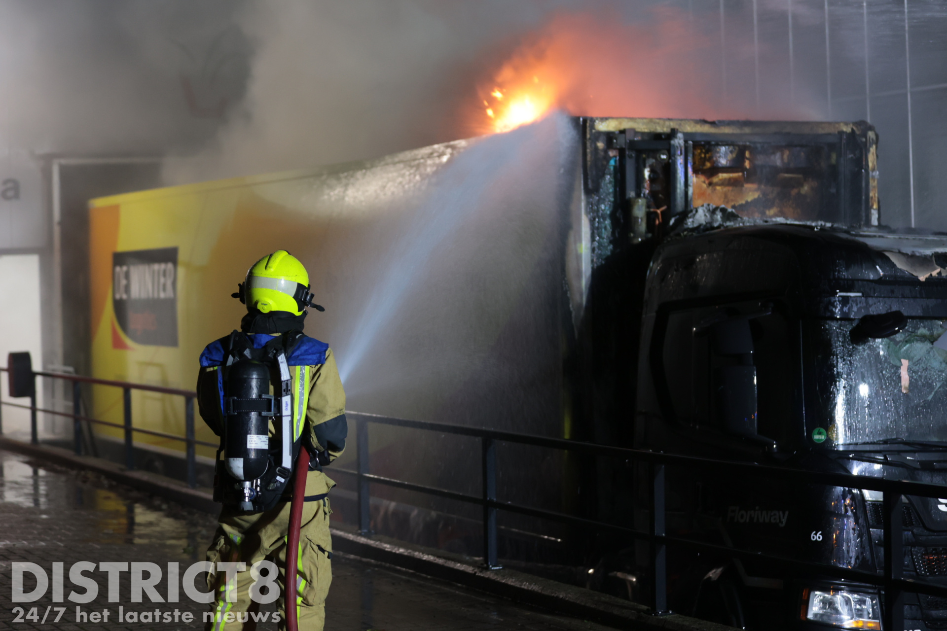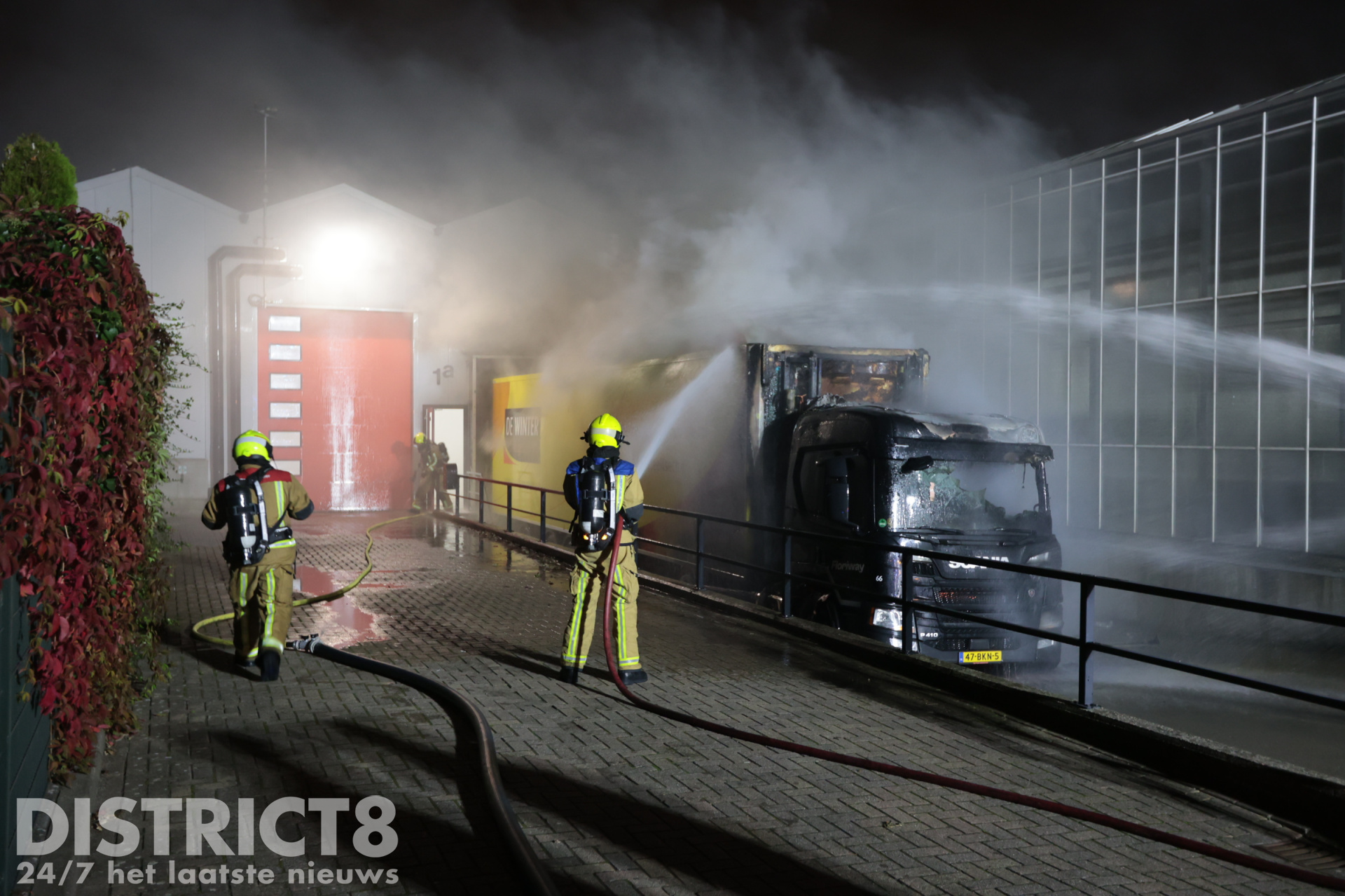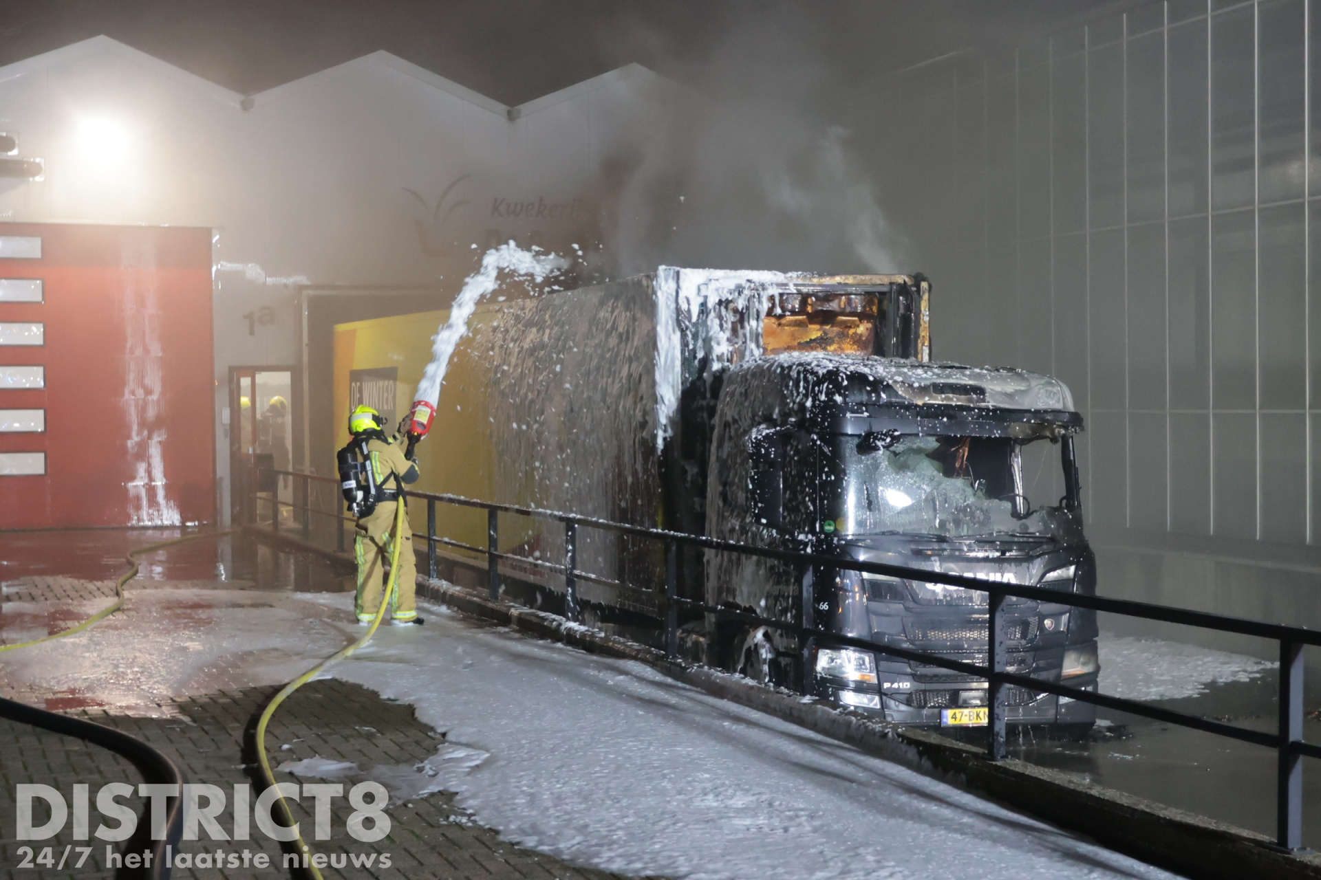 Zwetlaan-Honselersdijk. De brand is geblust er komt geen rook meer vrij. De vrachtwagen is grotendeels uitgebrand, de schade aan het bedrijf is gelukkig beperkt. Stichting Salvage zal de gedupeerde bijstaan met de, https://t.co/oEoWodn2Es