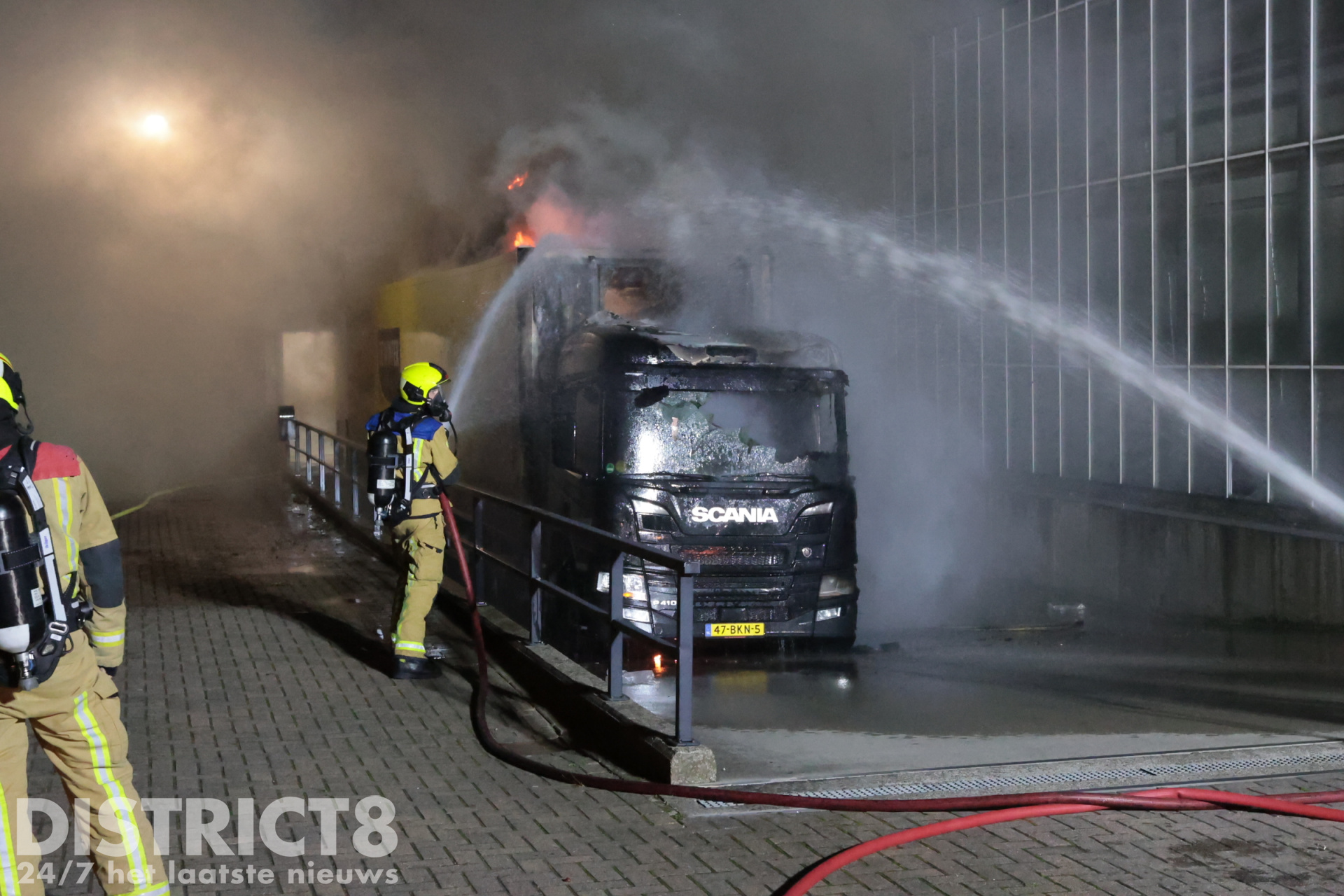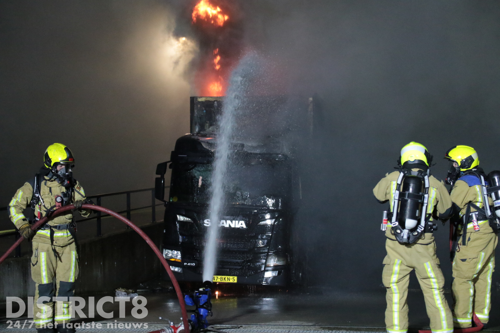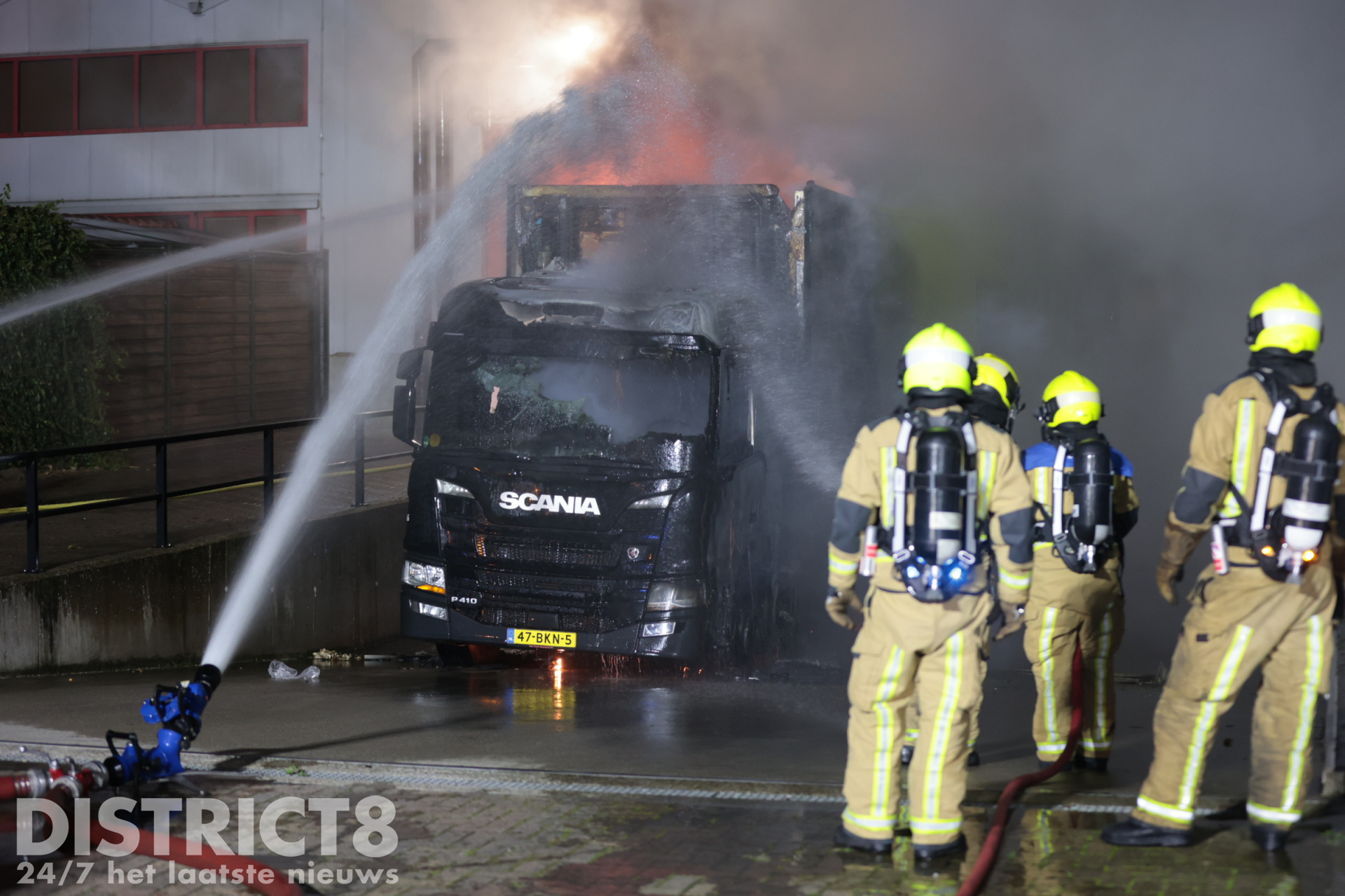 Zwetlaan-Honselersdijk. De brand is geblust er komt geen rook meer vrij. De vrachtwagen is grotendeels uitgebrand, de schade aan het bedrijf is gelukkig beperkt. Stichting Salvage zal de gedupeerde bijstaan met de, https://t.co/oEoWodn2Es
