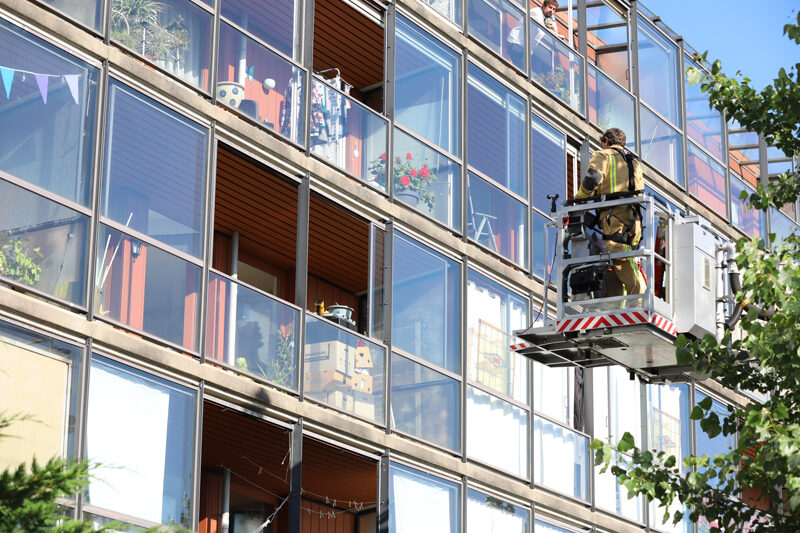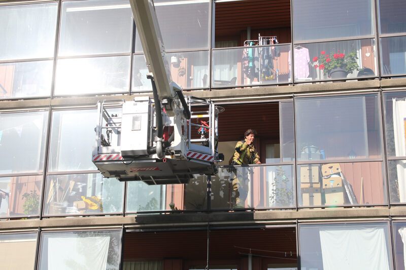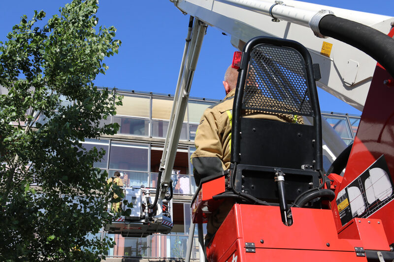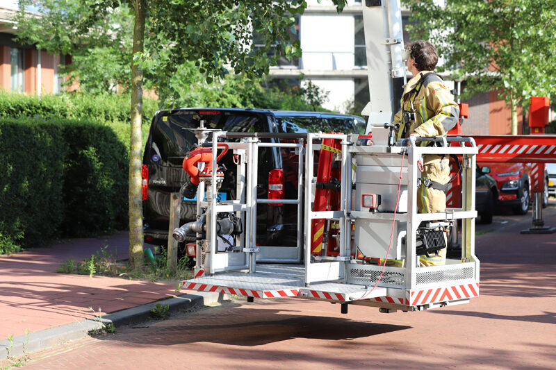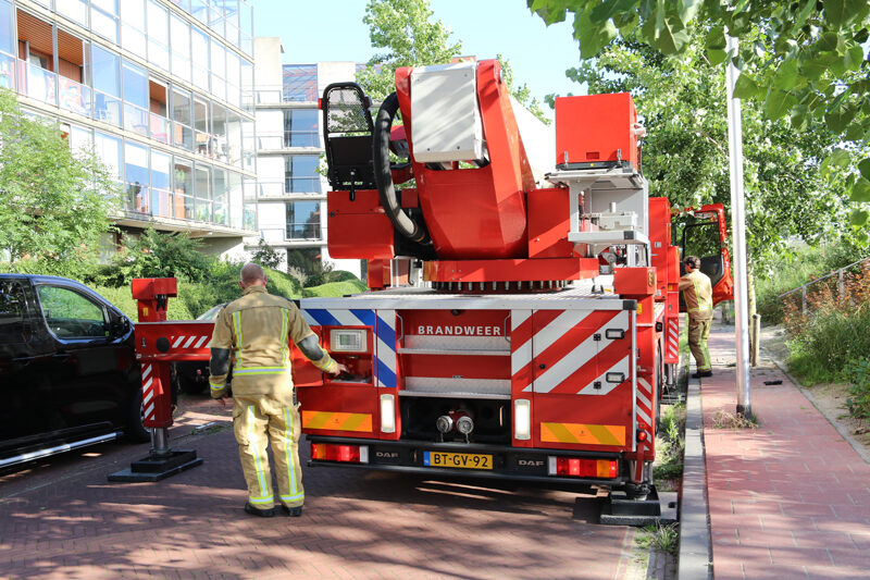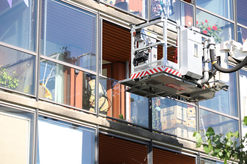 Een hoogwerker van de brandweer kwam ter plaatse. Omdat de balkondeur nog open stond, kon de brandweer via de korf van de hoogwerker het balkon op klimmen en de deur vanaf binnen openen.