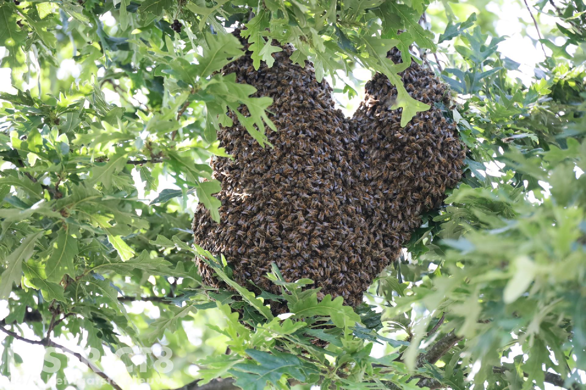 De imker werd donderdag door de school gebeld dat een zwerm met bijen een nieuw plekje had gevonden in een boom bij het parkeerterrein van de school. Dit was niet helemaal de bedoeling dus moest de imker de zwerm komen verwijderen.