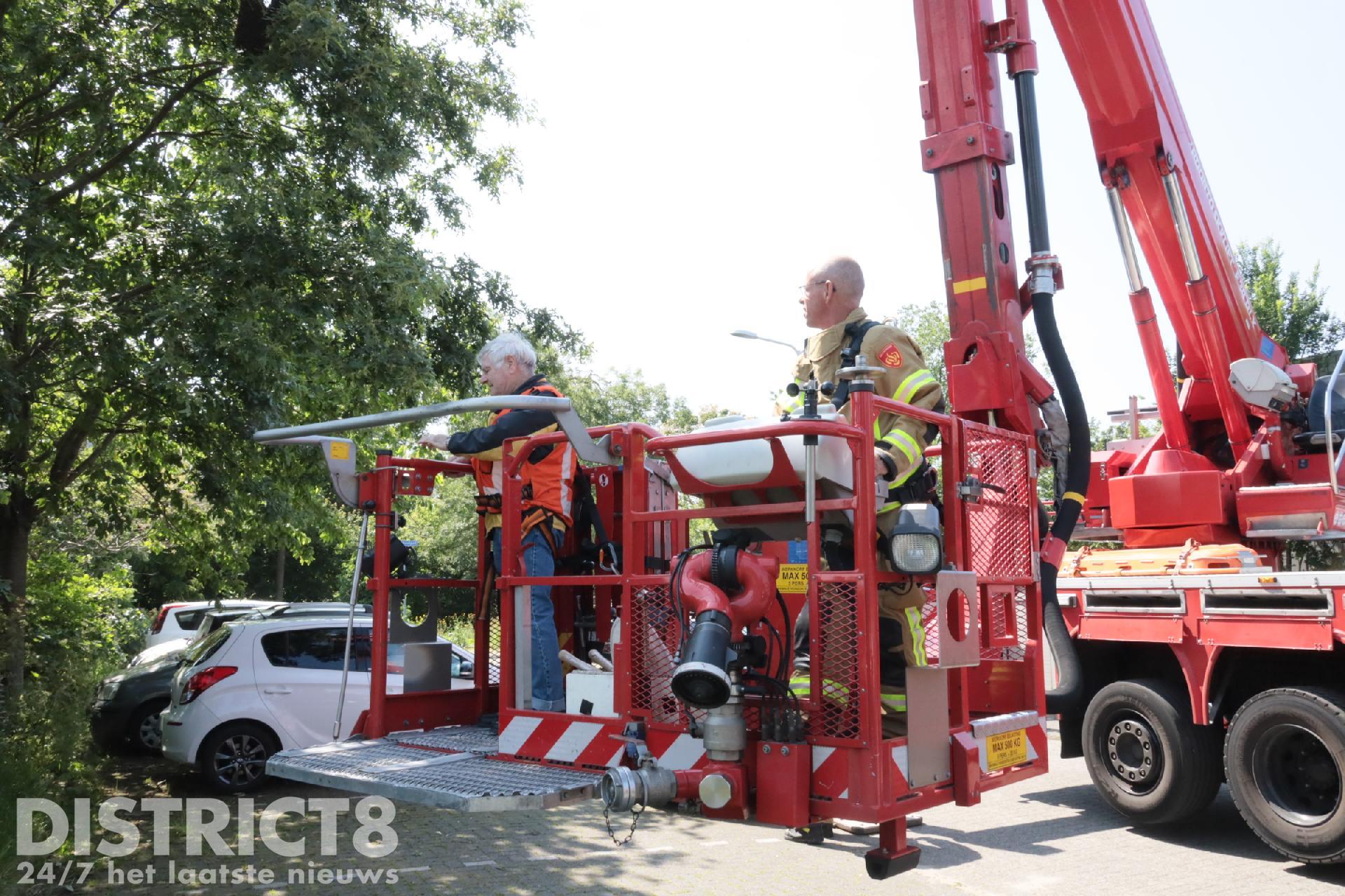 Brandweer helpt imker bij vangen van zwerm bijen Commandeurskade Maasland