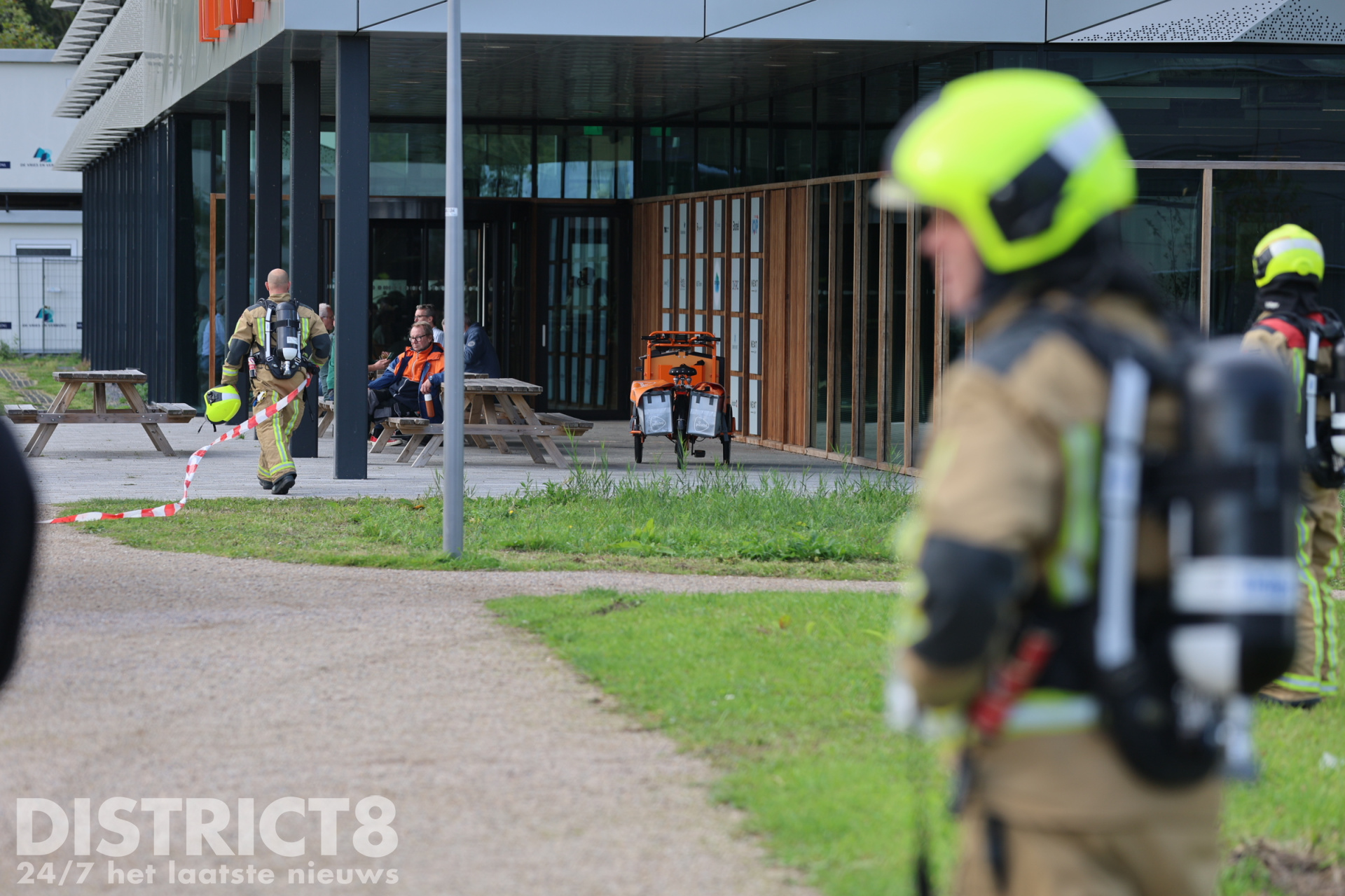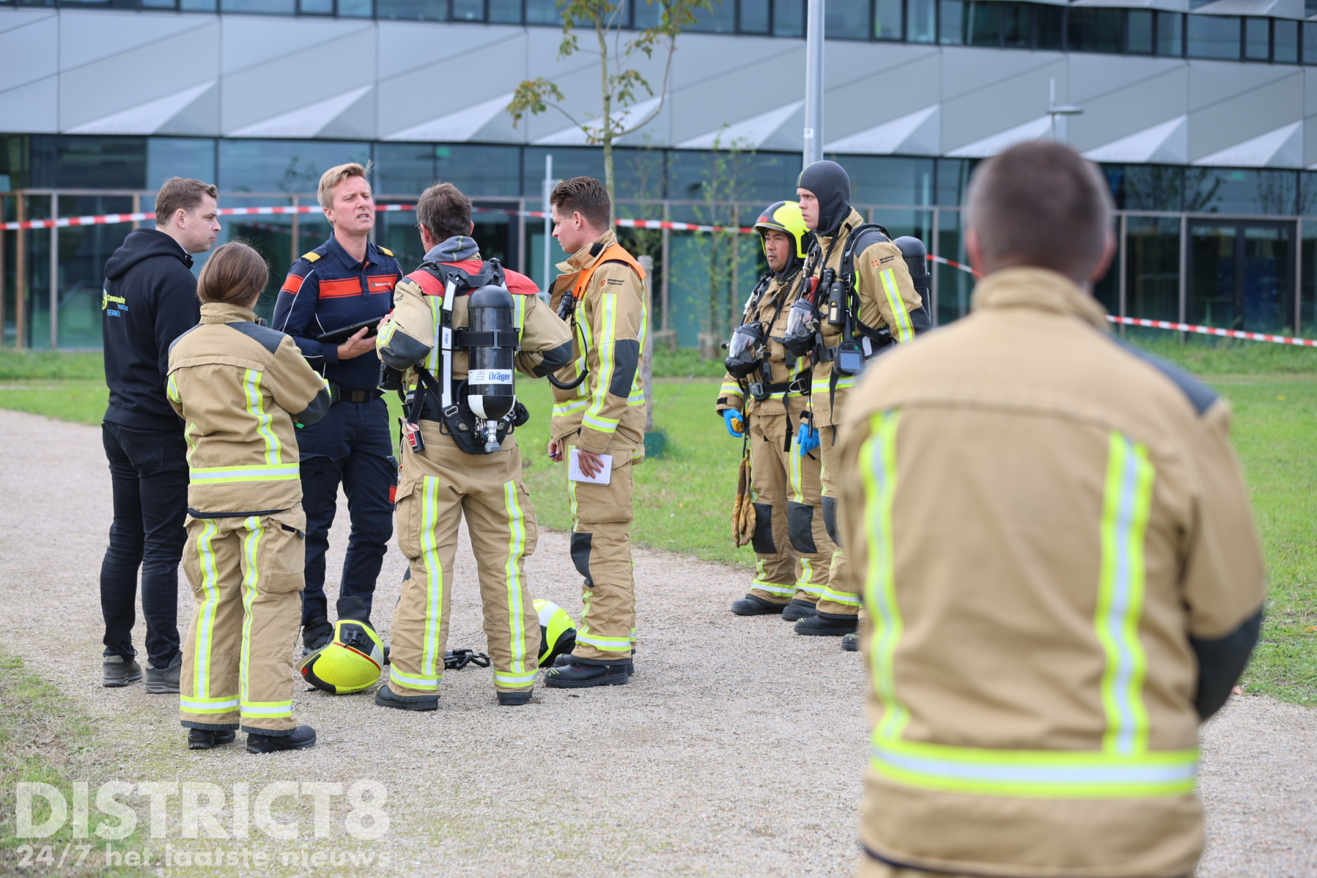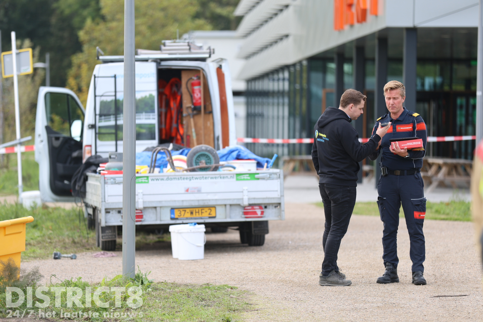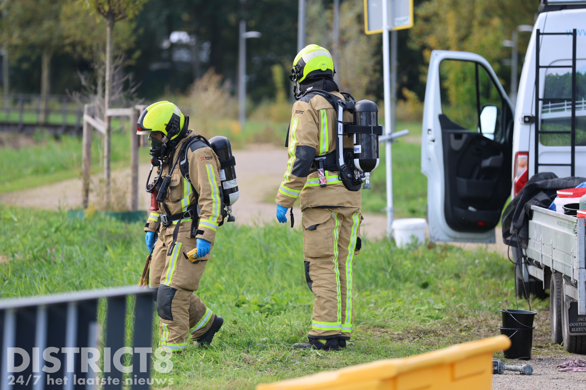 Met onder andere een Adviseur Gevaarlijke Stoffen (AGS) heeft de brandweer onderzoek gedaan rondom de werkbus. Een gebied rondom de wagen was tijdelijk afgezet.