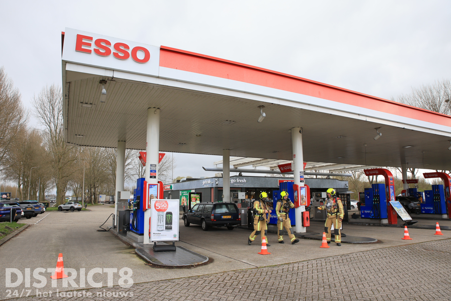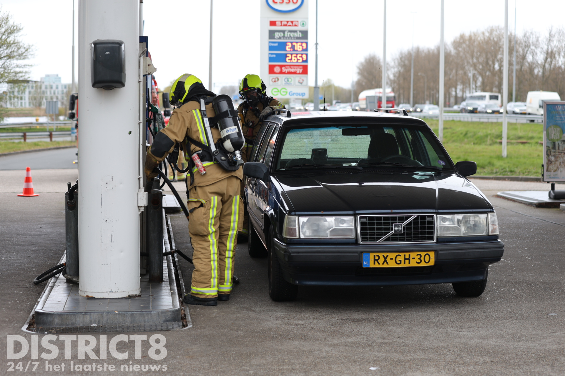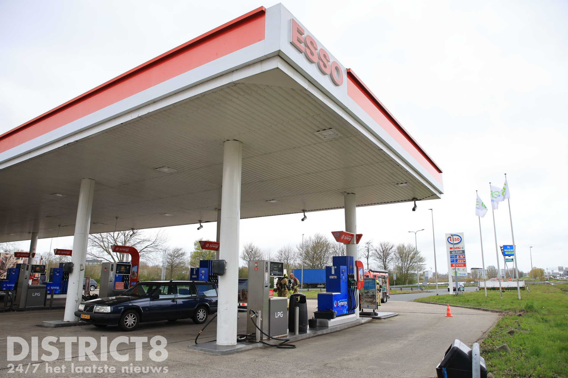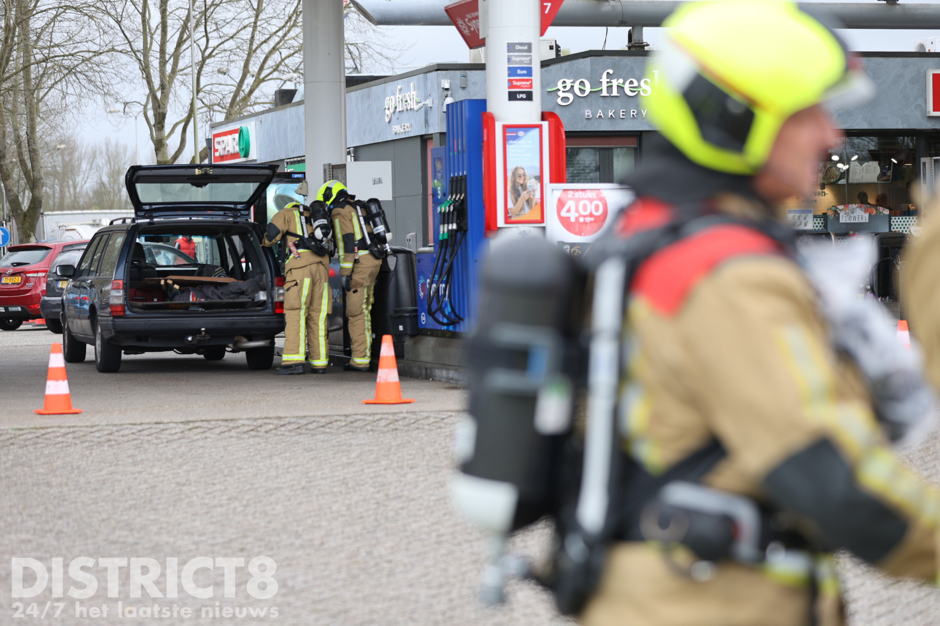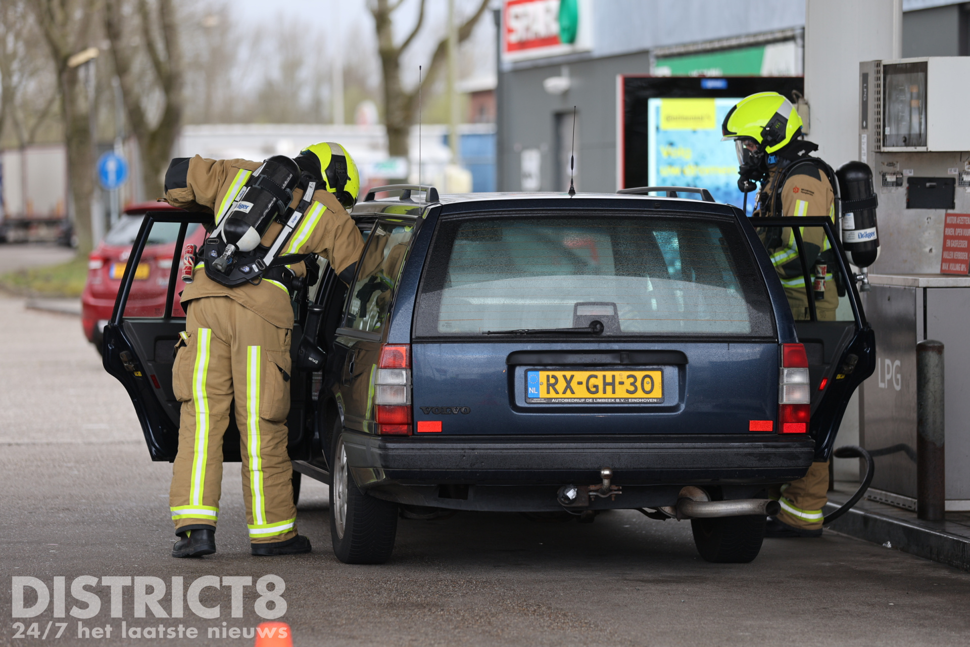 Bij aankomst bleek een auto met LPG-installatie te lekken tijdens het tanken. Medewerkers van het tankstation hadden direct de noodstop geactiveerd en de brandweer gebeld.