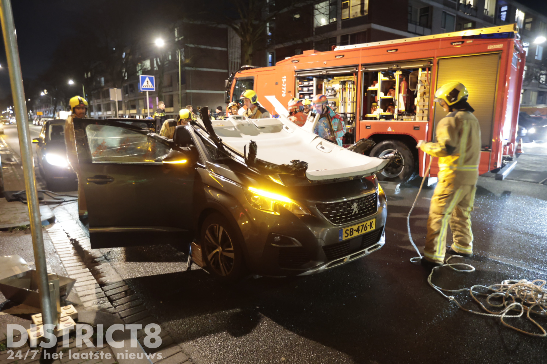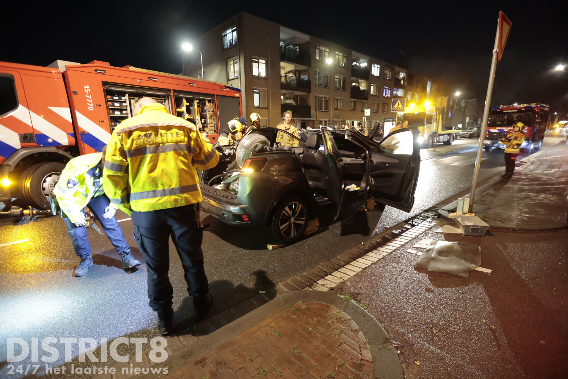 De brandweer heeft uiteindelijk het dak van de auto eraf geknipt waarna de bestuurder uit de auto gehaald is en in de ambulance verder is gekeken naar de opgelopen verwondingen.