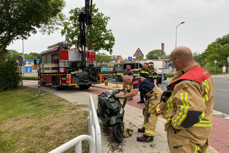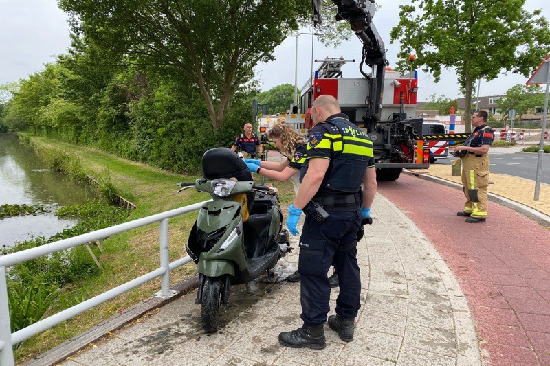 De Lier – Op vrijdagochtend 22 mei werden de hulpdiensten gealarmeerd voor een voertuig te water aan de Veilingweg in De Lier. Het bleek te gaan om een scooter.