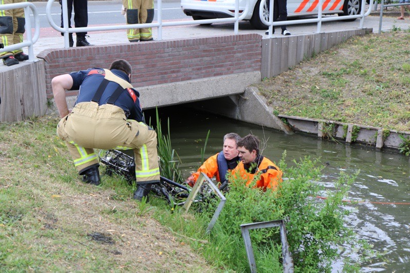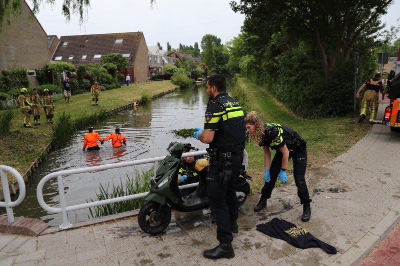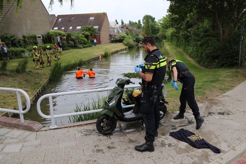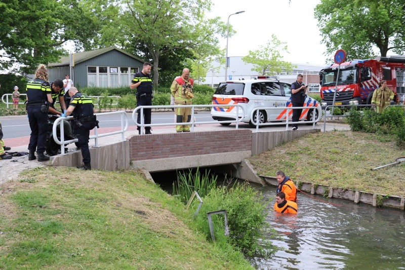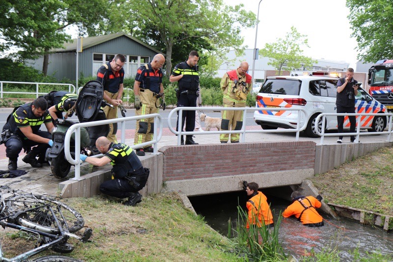 In de sloot werd een scooter aangetroffen. Op de scooter zat geen kentekenplaat meer. De scooter was hier mogelijk gedumpt.