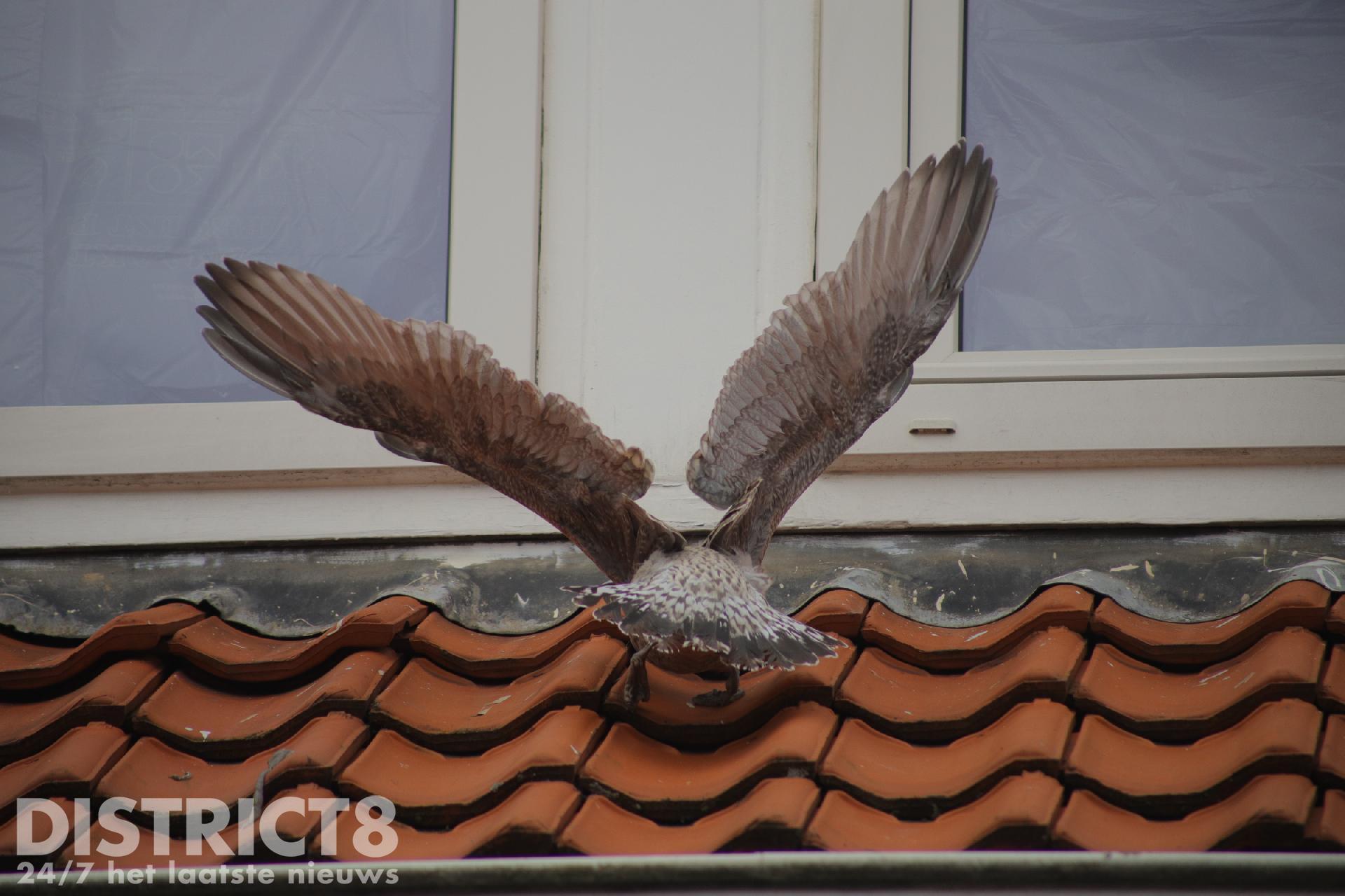 Omdat de meeuw nog jong is kon de meeuw op het dak geen vaart maken om te vliegen. De dierenambulance is ervan verzekerd dat dit nu wel kan, nu het beestje weer op de grond is.