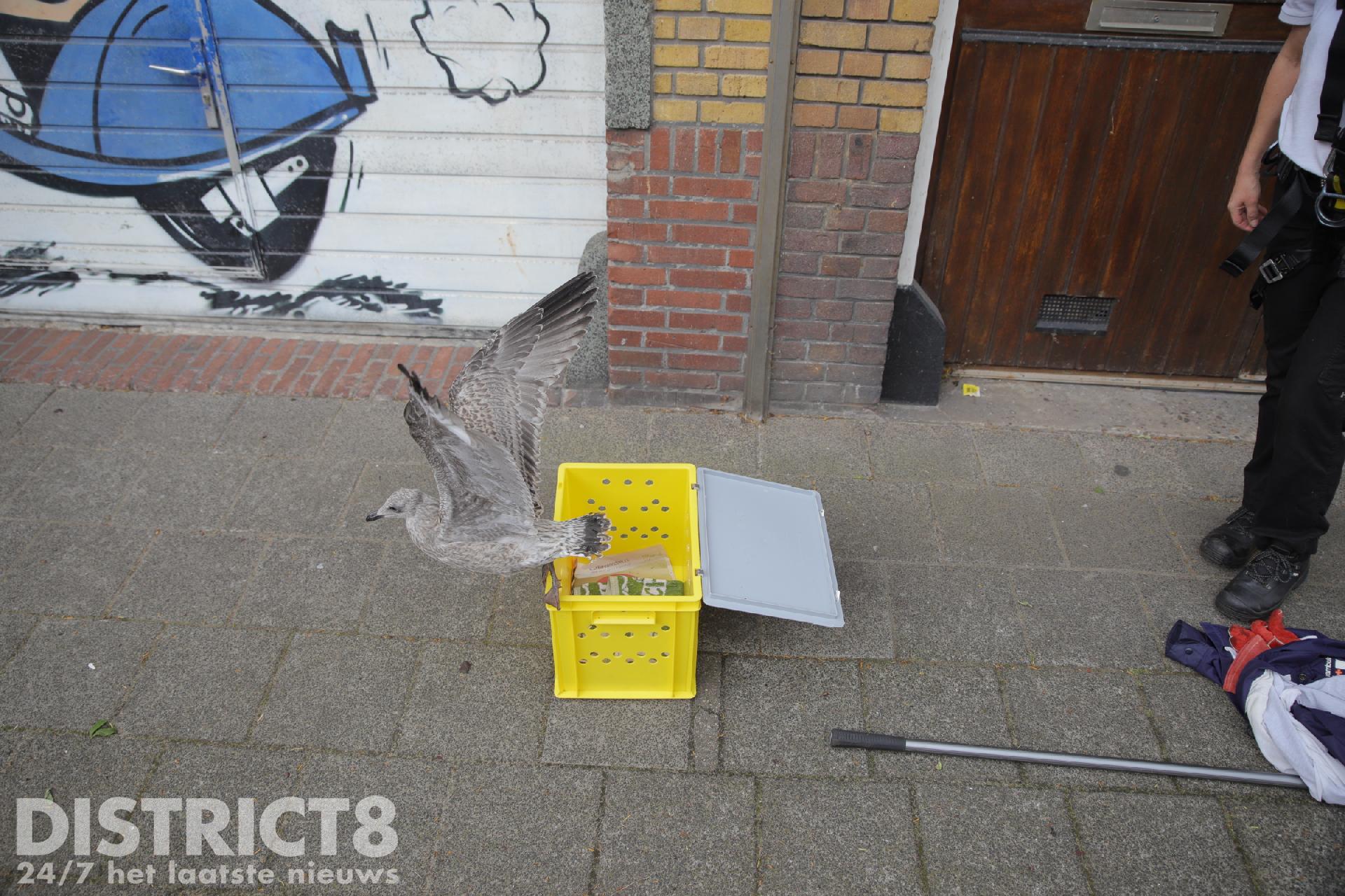 Brandweer ondersteunt dierenambulance voor meeuw in nood Mandarijnstraat Den Haag