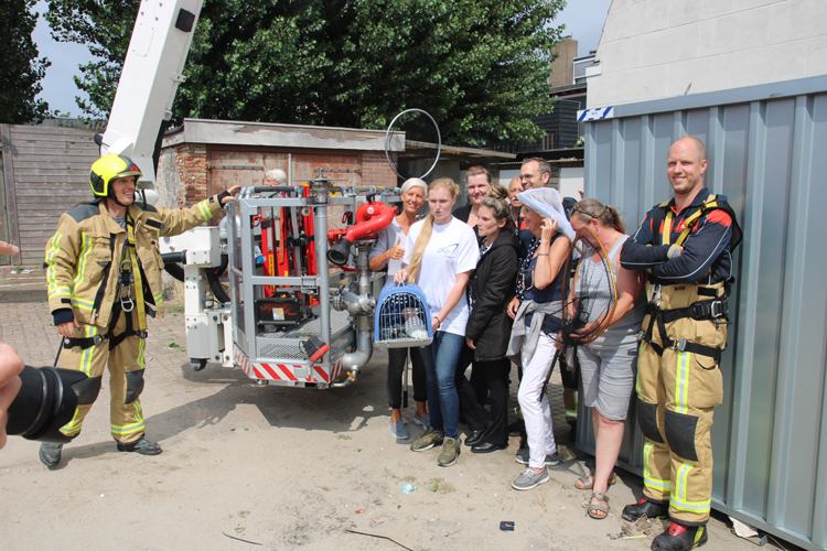 Ter plaatse bleek er een rosé kaketoe al vier dagen lang in een boom te zitten. Verschillende medewerkers van Team Dierenacties Westland hadden afgelopen dagen en vandaag meerdere pogingen gedaan om het beestje te vangen met behulp van schepnetten, dit had helaas geen resultaat en werd besloten de brandweer te bellen. De brandweer kwam ter plaatse en heeft met een straal water geprobeerd de vogel uit de boom te spuiten. Met behulp van de hoogwerker zijn twee brandweermannen met schepnetten richting de kaketoe gegaan en hebben de vogel kunnen vangen.