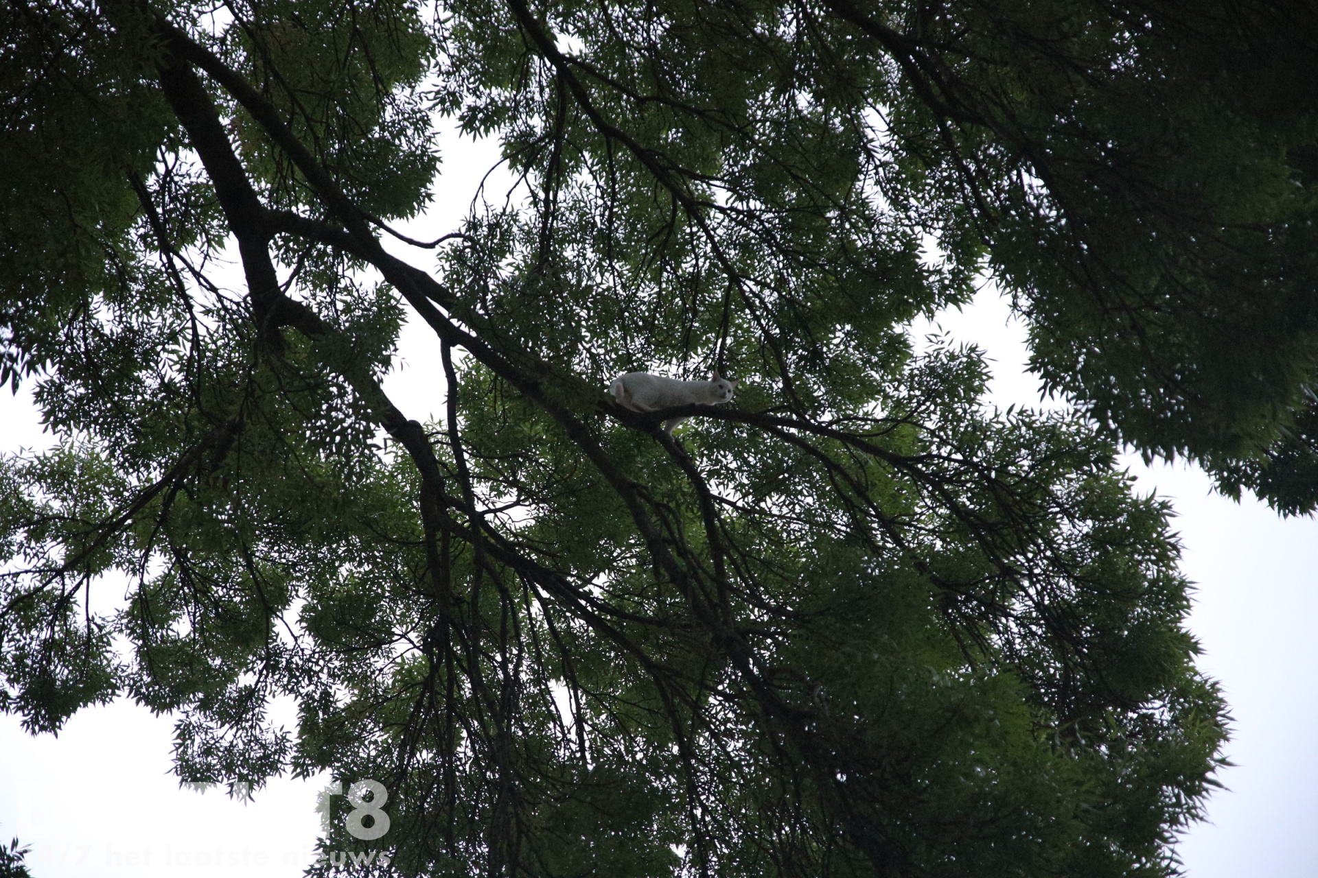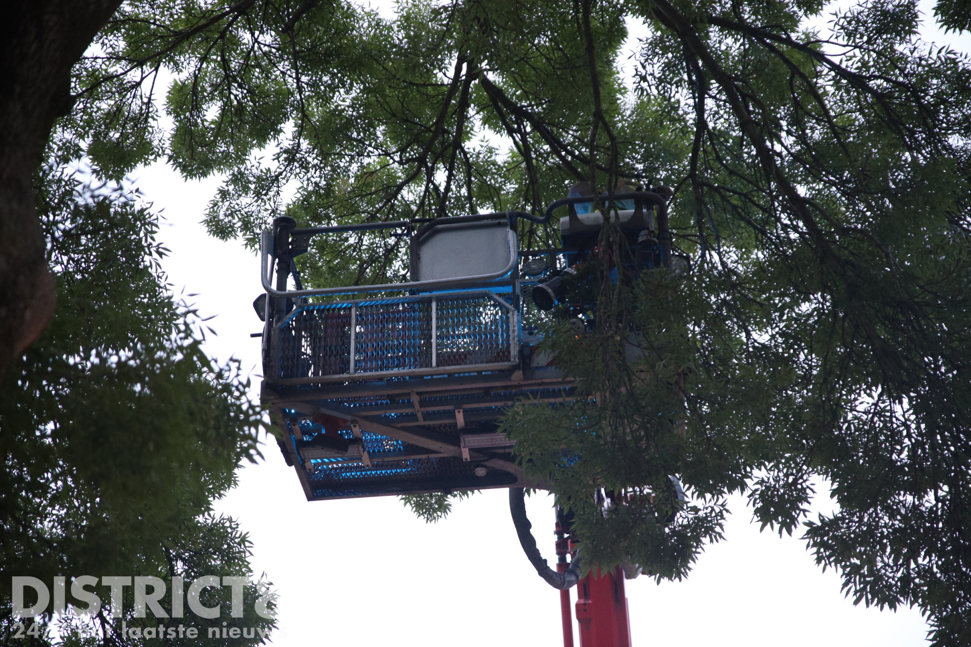 Het lukte de eigenaar niet om de kat zelf uit de boom te halen. Daarom werd de brandweer met een hoogwerker ter plaatse gevraagd.