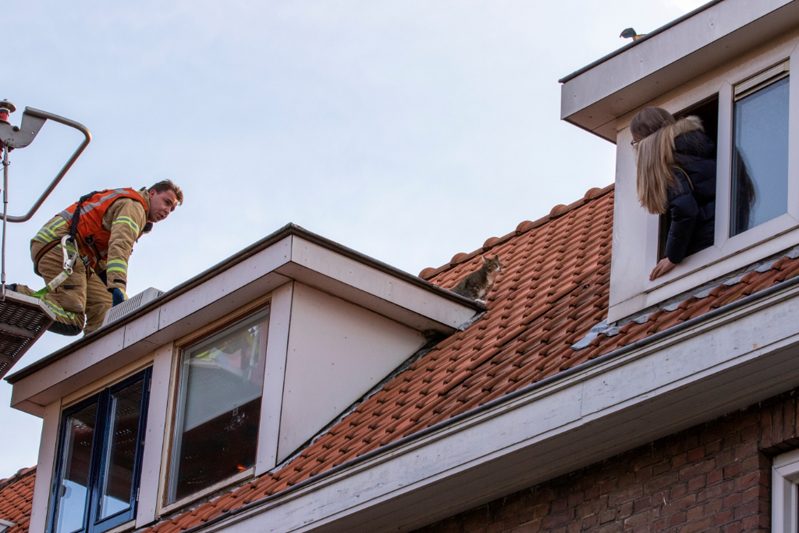 Schiedam – De brandweer heeft maandagavond een kat van het dak gered aan de Bilderdijkstraat in Schiedam. Het dier zat al sinds gisteren op de dakkapel en leek niet van plan daar vanaf te komen.