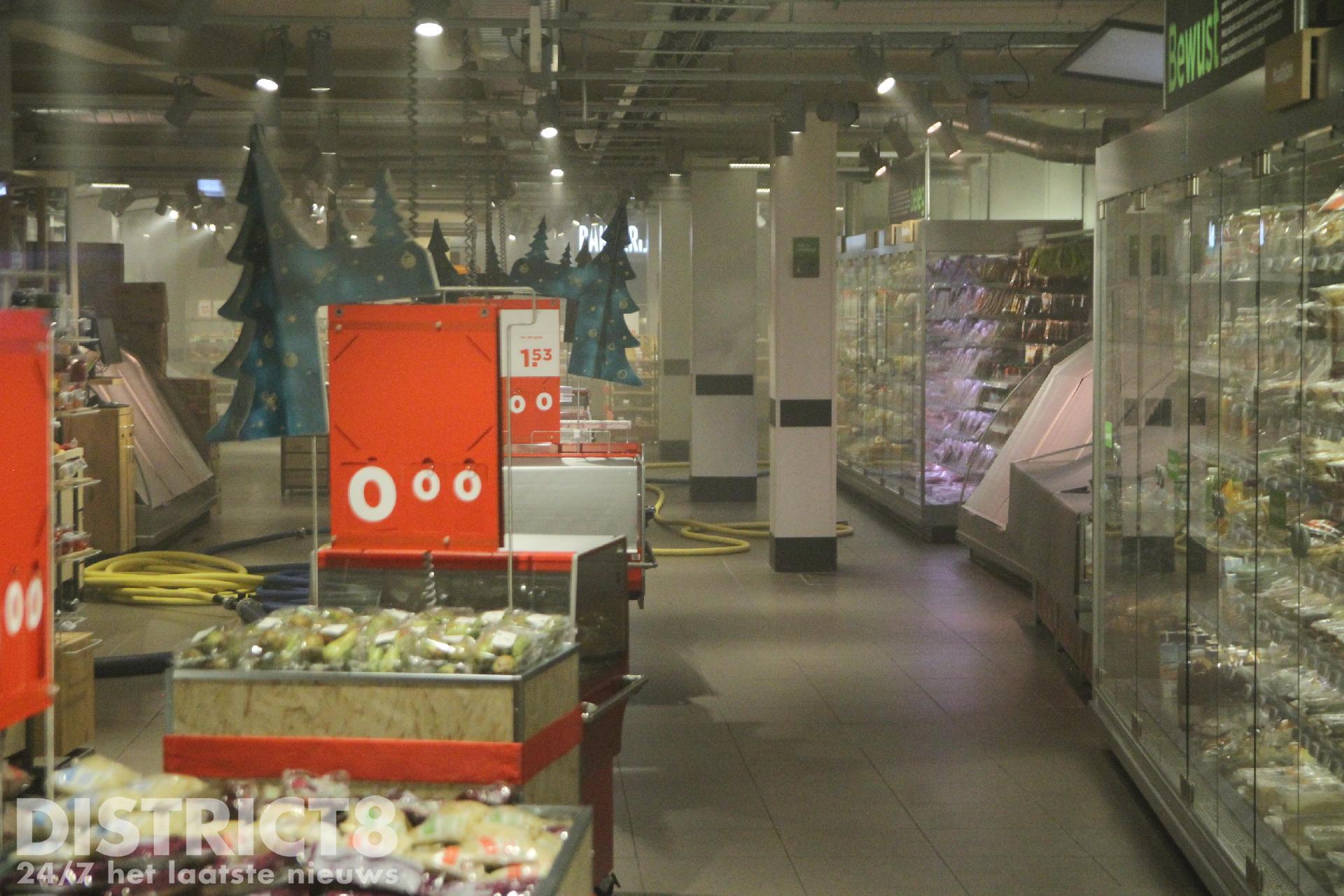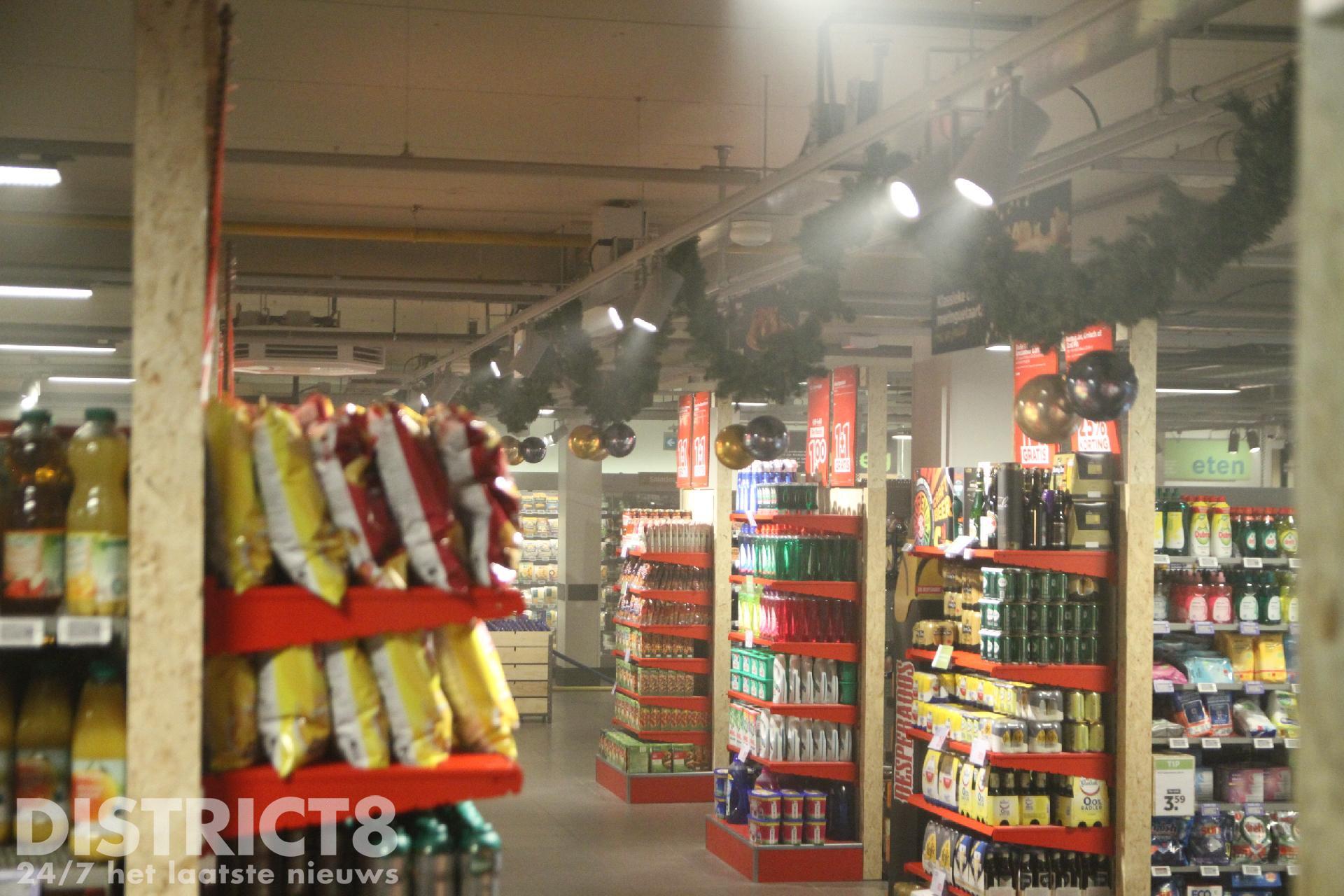 Bij aankomst van de brandweer bleek er een schuur achter de supermarkt in brand te staan, de brandweer heeft opgeschaald naar ‘Grote brand’ en is bezig met het blussen van de brand.