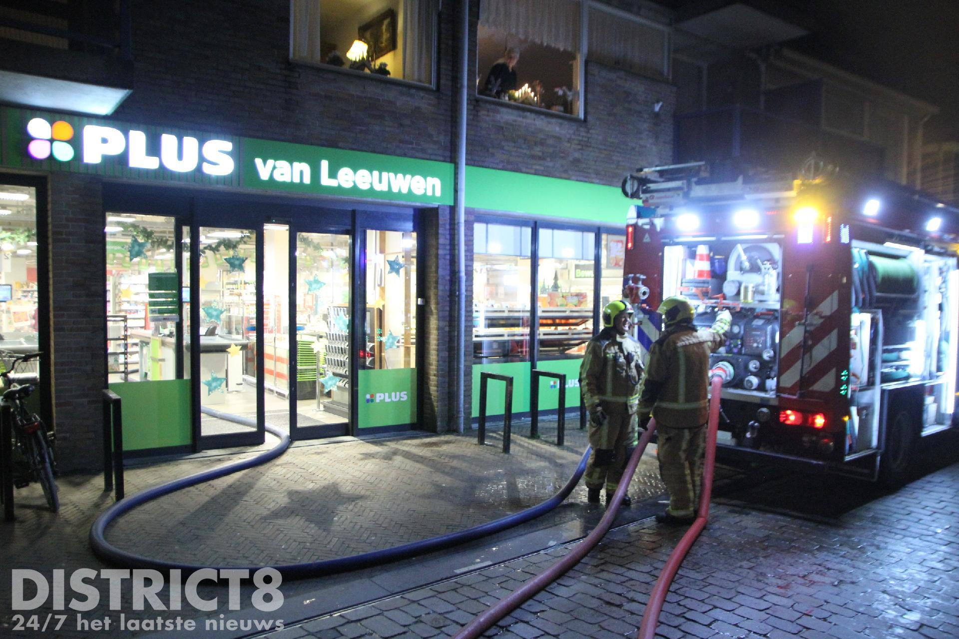 Den Hoorn – Op de Leeuwenberg in Den Hoorn is zaterdagavond 31 december een grote brand ontstaan achter de Plus supermarkt. Omstreeks 18:15 kwam er op de meldkamer een melding binnen dat er veel rookontwikkeling was bij de supermarkt.