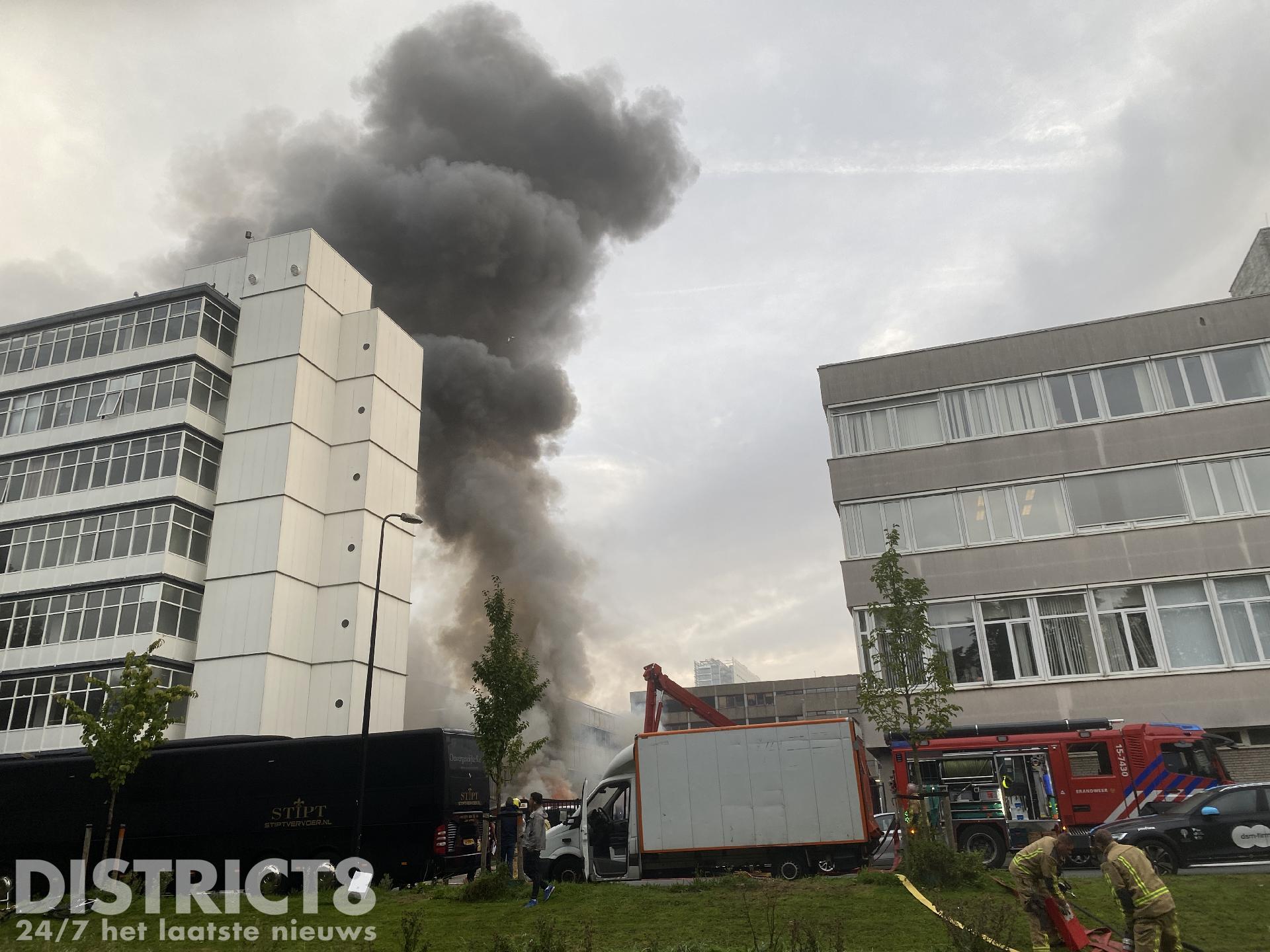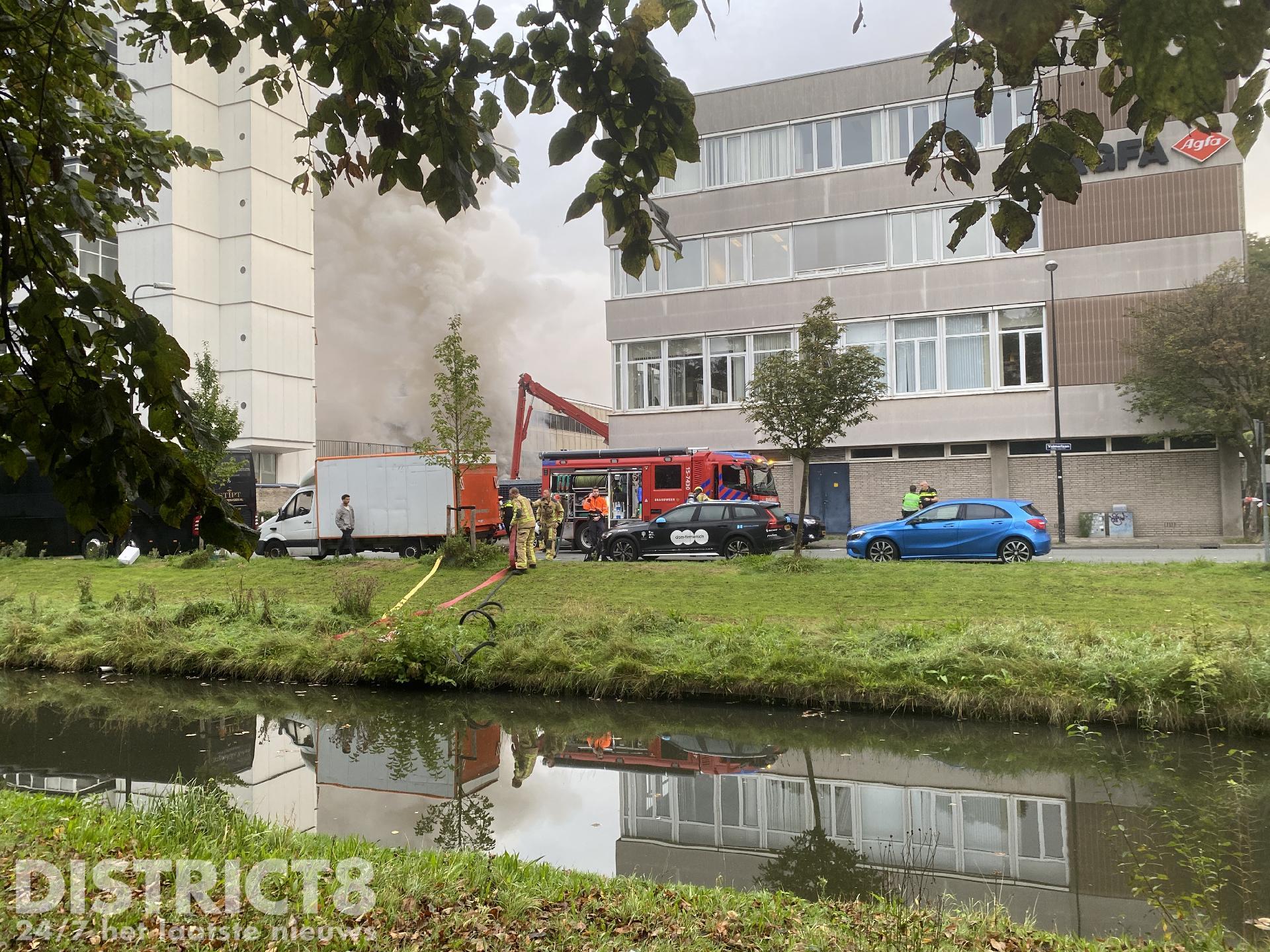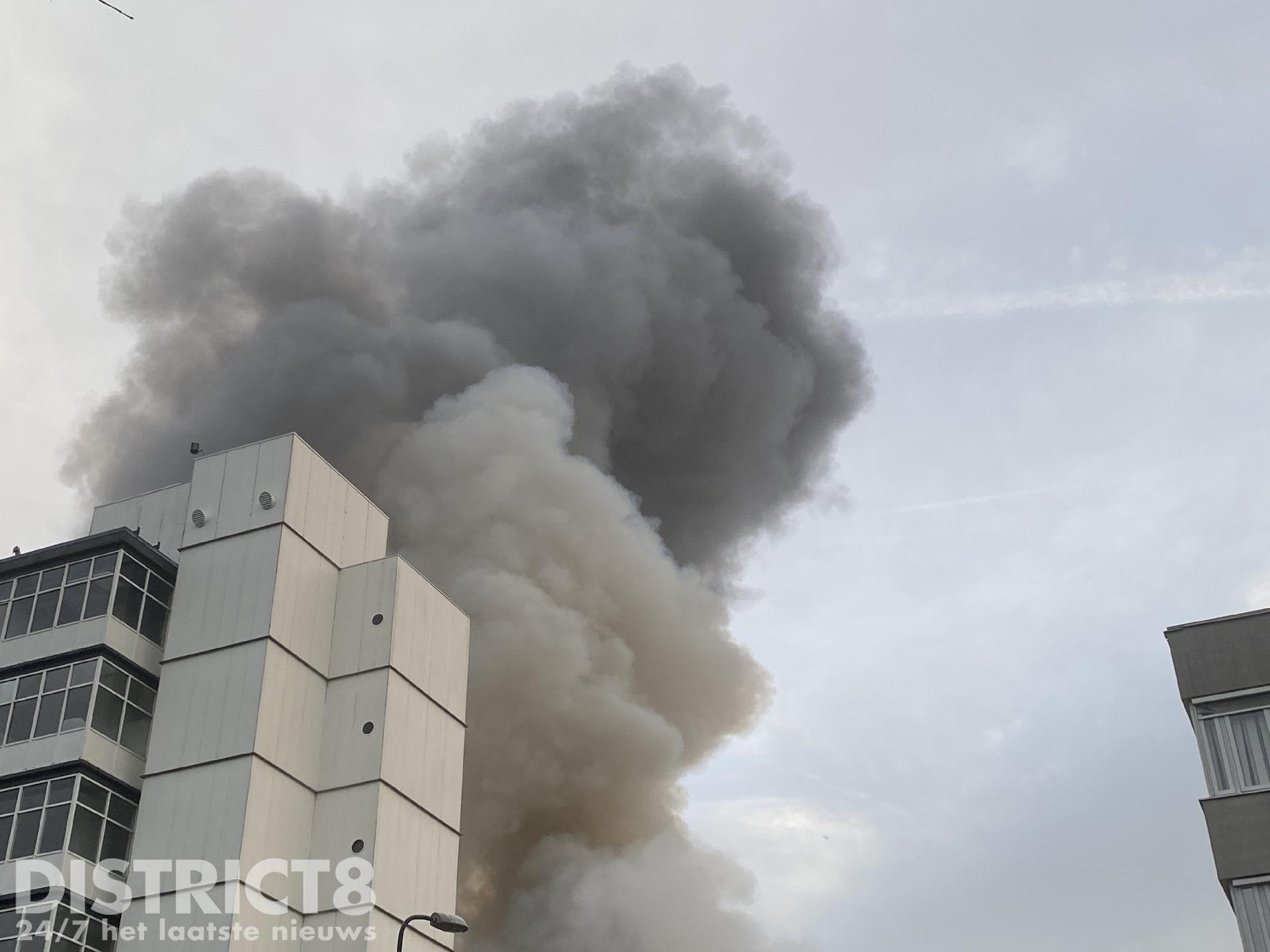 De brand word door middel van een hoogwerker en straat waterkanonnen bestreden. De vlammen waren vanaf de straat te zien.