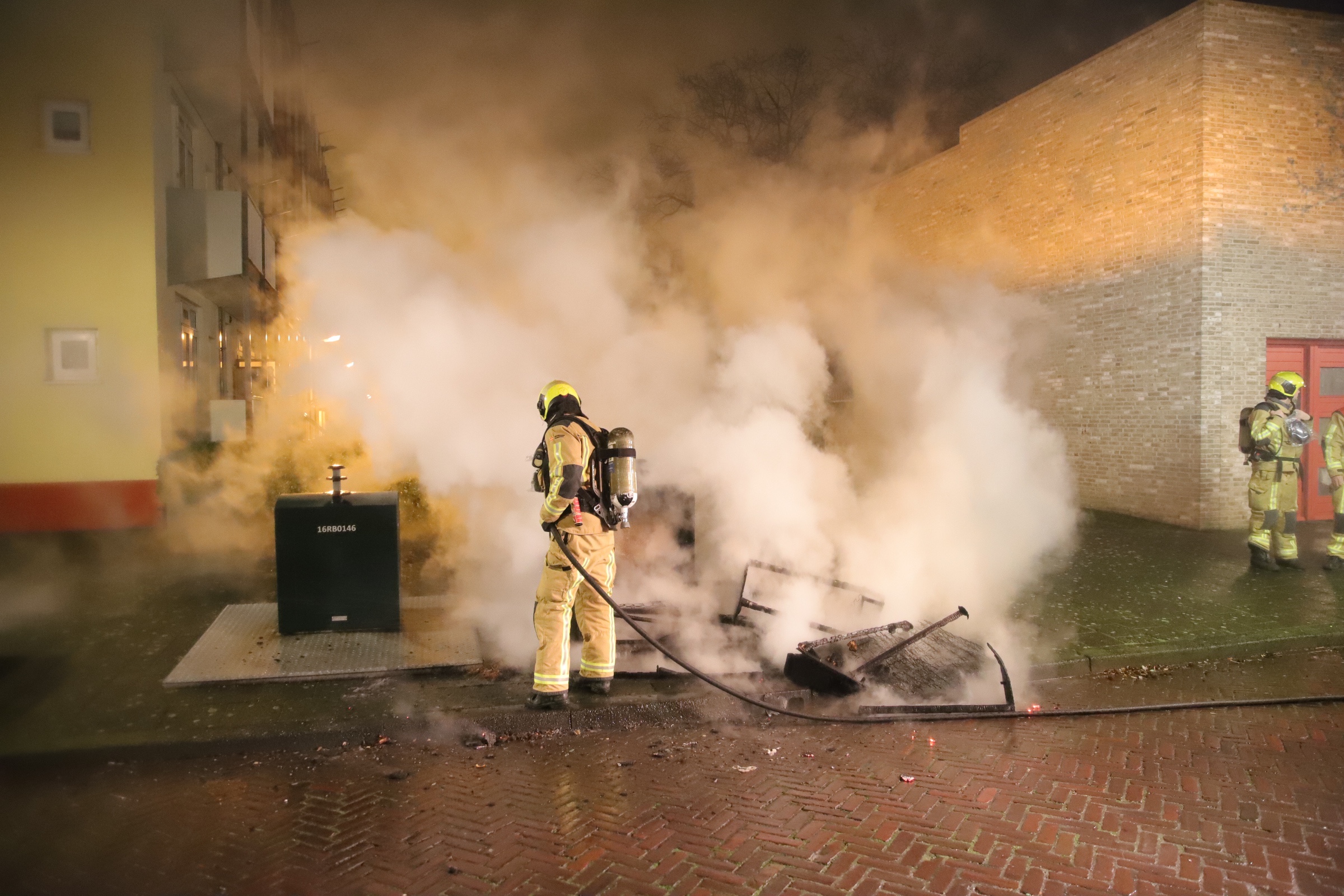 Toen de brandweer arriveerde bleek er een meubelstuk tegen een ondergrondse afvalcontainer in brand te zijn gestoken.