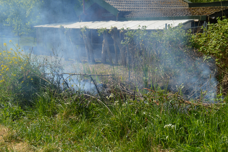 Bij aankomst bleek het te gaan om een man die zijn afval aan het verbranden was. De man zegt zelf dat er niks mis kon gaan aangezien de man een emmer water en een riek klaar had staan. De handhaving is met de man in gesprek gegaan, de brandweer van Maasland kon vrij snel terug naar de kazerne.
