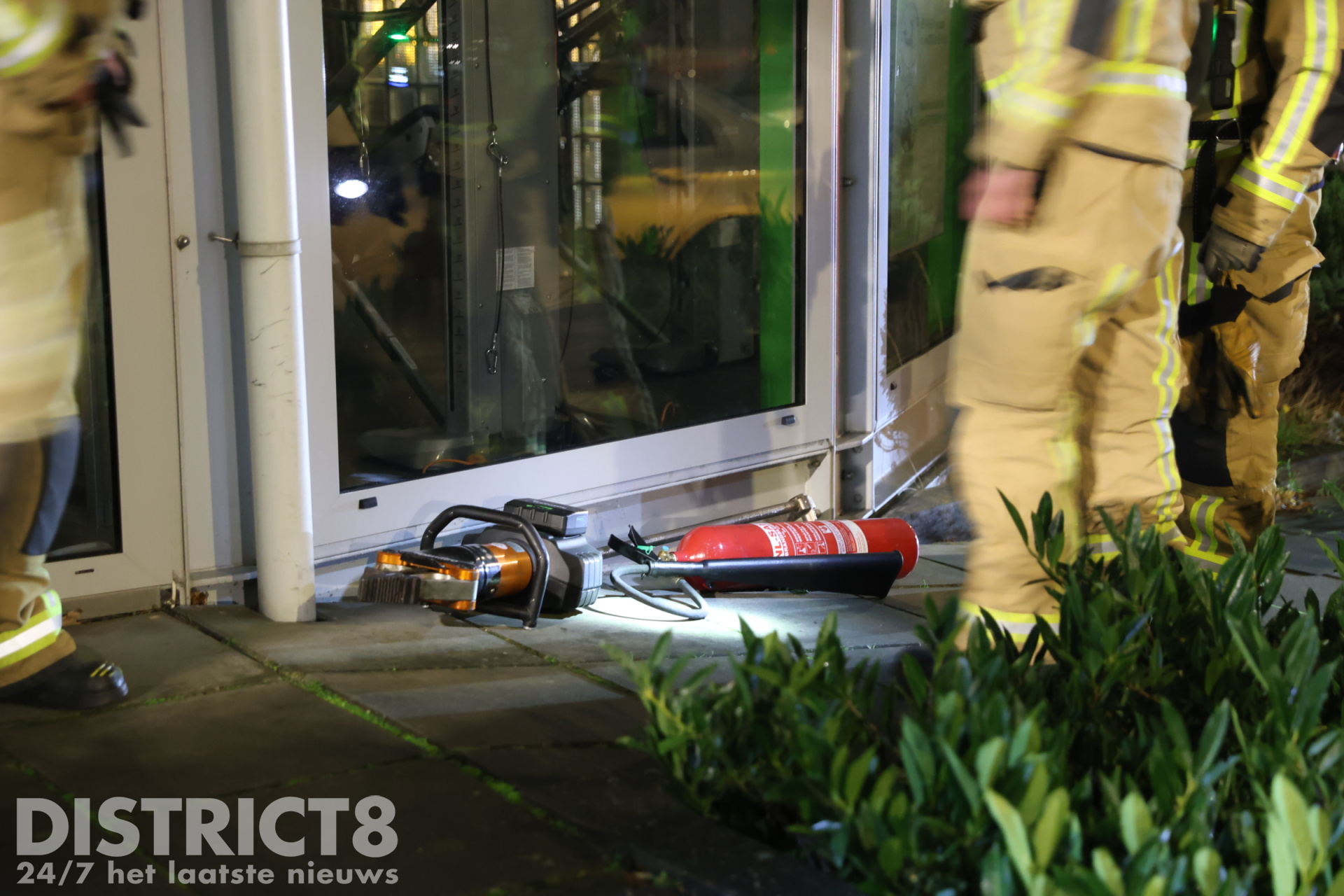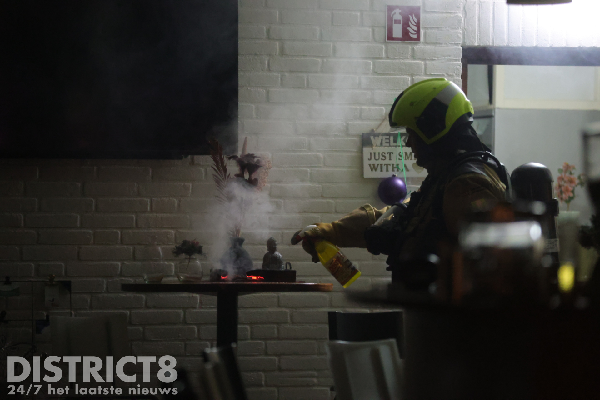 Toen de brandweer zich toegang had verschaft tot het pand, kon het vuur snel worden geblust met een spuitbus schoonmaakmiddel. Hierna werd het plateau naar buiten gegooid en werd het pand geventileerd.