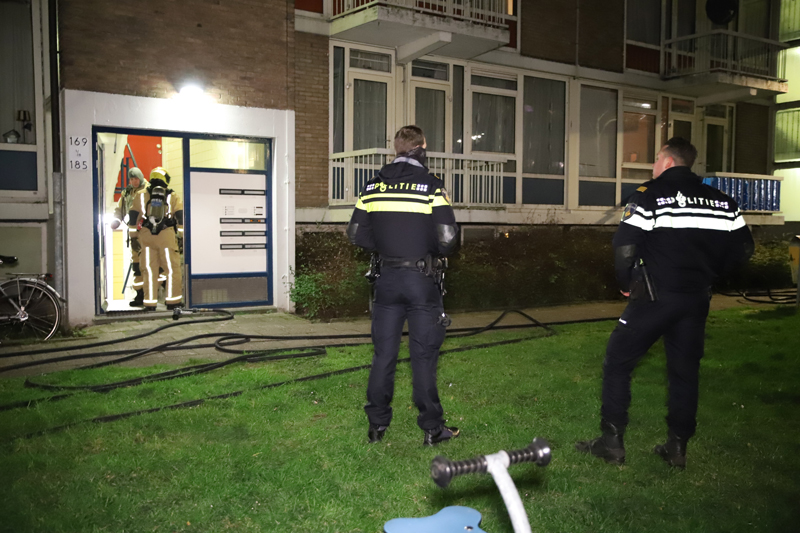 Een deur werd door de brandweer geforceerd om de brand te kunnen bereiken. In de woning werd een persoon aangetroffen die rook had ingeademd.