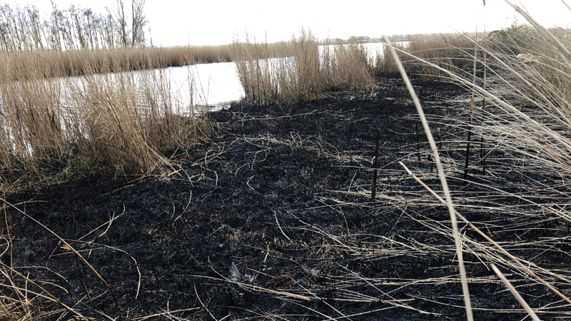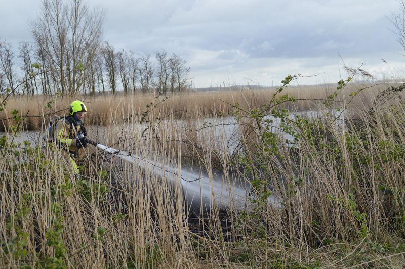 Ter hoogte van de Foppenplas stond ruim 20 meter berm (met riet) in brand. De rook van de brand was in de omgeving goed te zien.