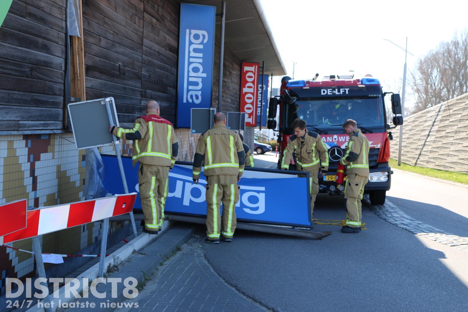 Ter plaatse hing er een groot reclamebord los van een winkel, de brandweer kwam zonder spoed ter plaatse en heeft een plan van aanpak gemaakt om het bord te verwijderen.