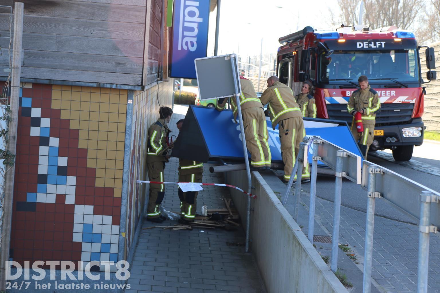 Met behulp van een touw is het bord losgetrokken door de brandweer, de hoogwerker van de brandweer was ook gealarmeerd maar hun inzet was achteraf niet nodig.
