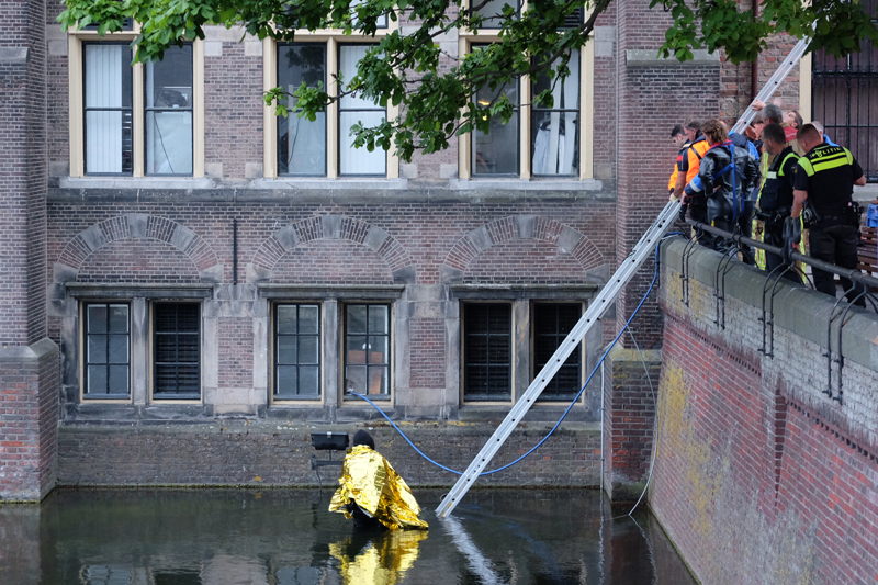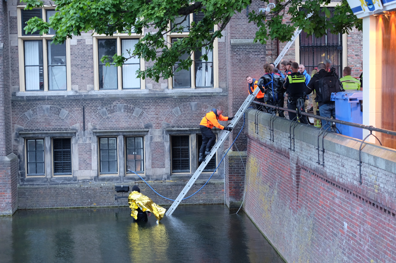 Den Haag – Brandweermannen hebben maandagavond 29 juni een man uit de Hofvijver in Den Haag gehaald.