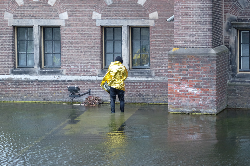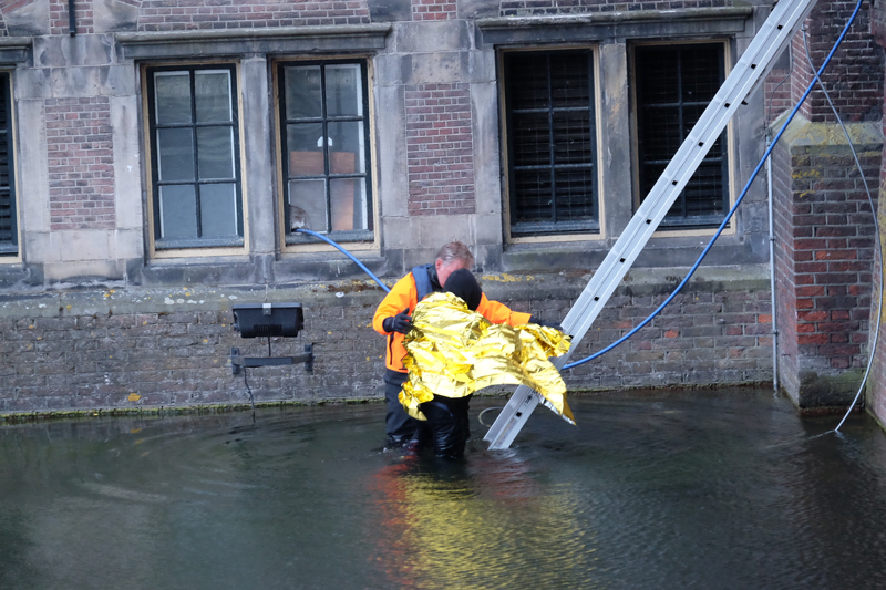 Omstreeks 21:30 kreeg de brandweer een melding om de politie te assisteren, ter plaatse bleek er door nog onbekende oorzaak een man in de Hofvijver te lopen.