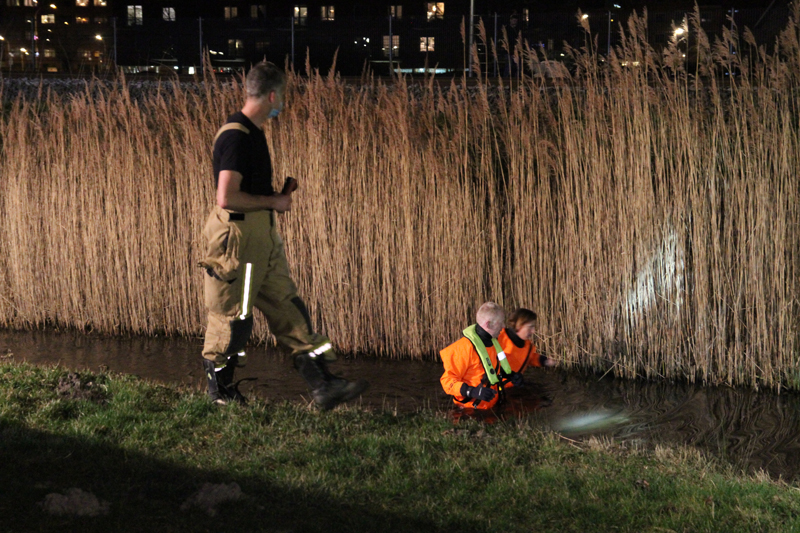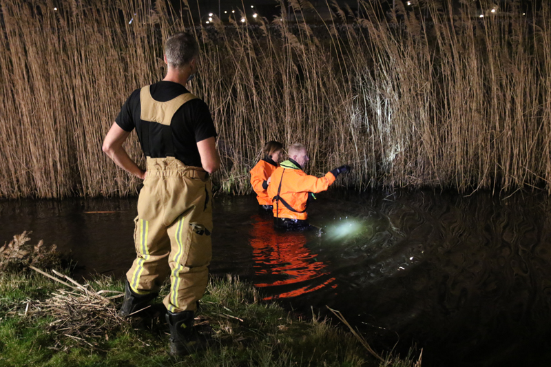 De brandweer kwam met spoed ter plaatse, de duikers en brandweermannen in waadpakken hebben meerdere zoekslagen gemaakt in het water op zoek naar een mogelijk persoon.