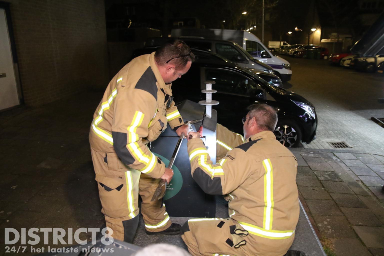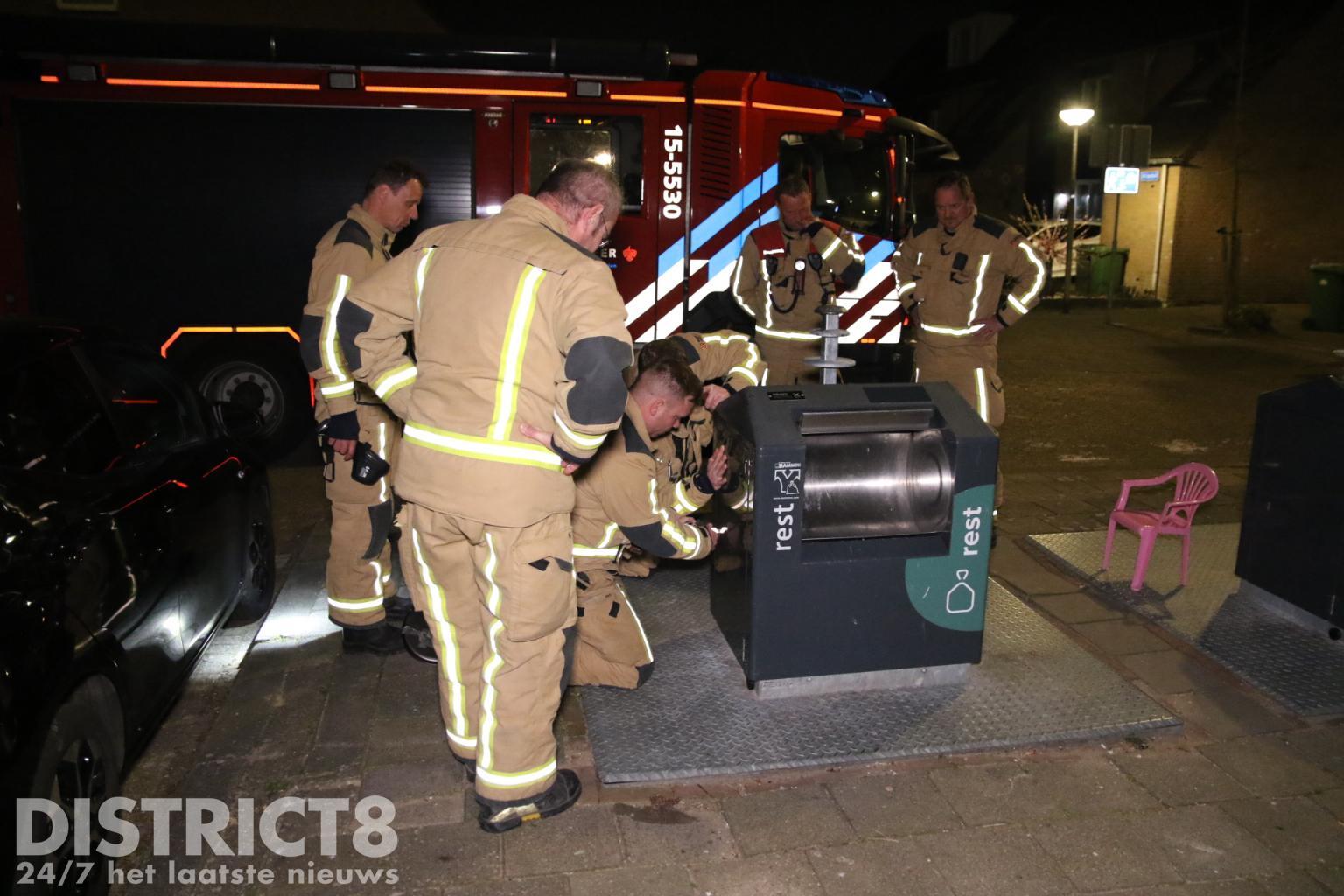 Een buurtbewoner hoorde een raar geluid uit een ondergrondse container komen. Het geluid leek op het gemiauw van een kat. Omdat hij dit niet vertrouwde werd de brandweer ingeschakeld.