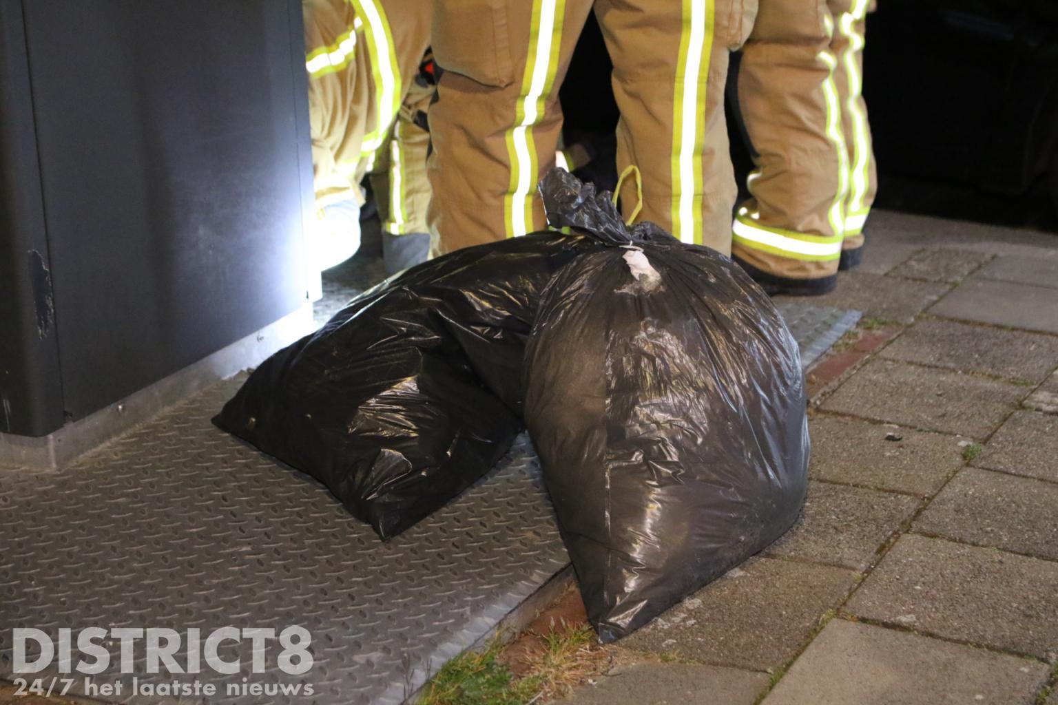 Met een plafondhaak heeft de brandweer twee vuilniszakken uit de container gehaald, hier bleek geen kat in te zitten. Uiteindelijk bleek het niet te gaan om een kat, maar mogelijk om een groot knaagdier.