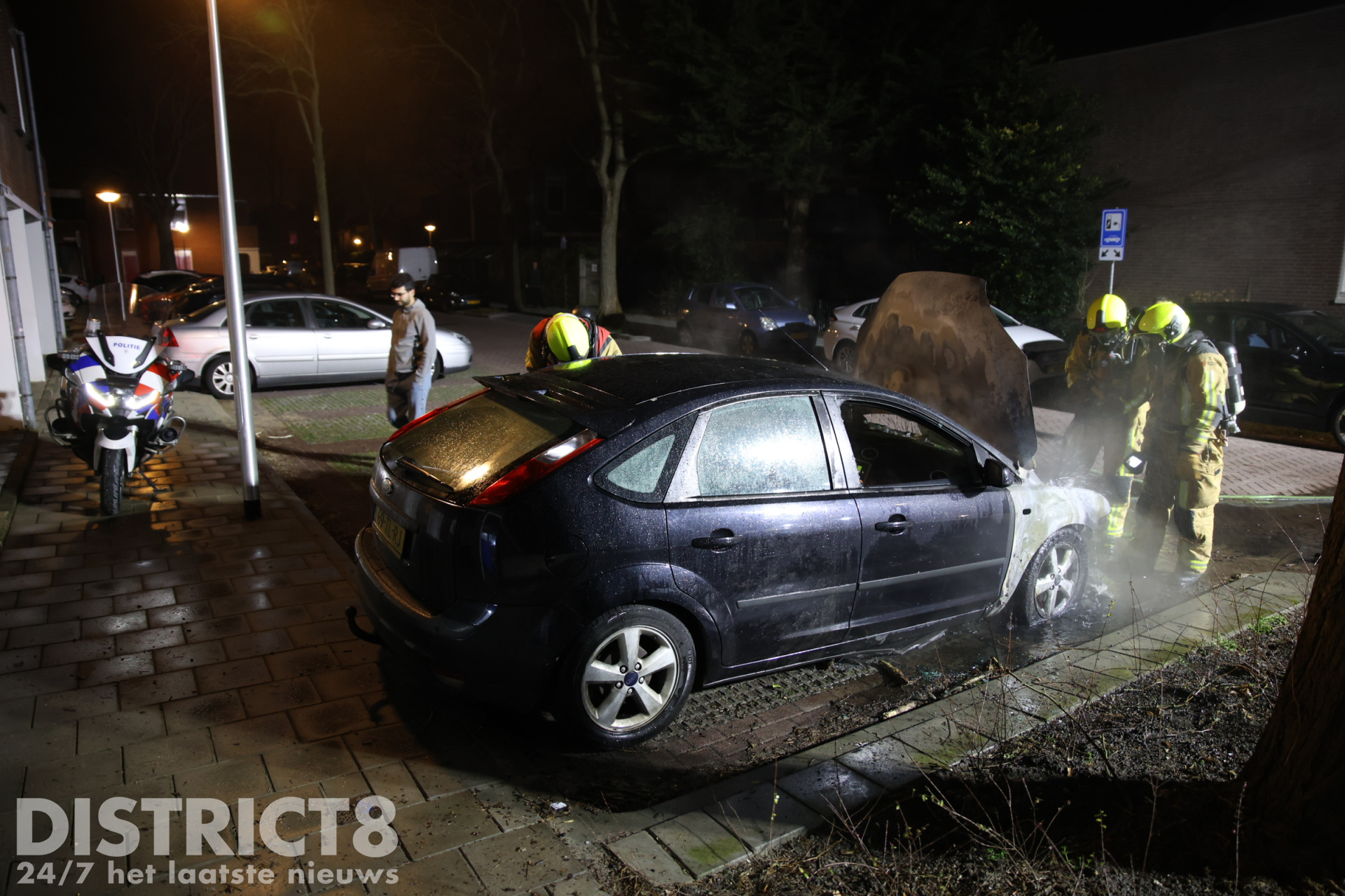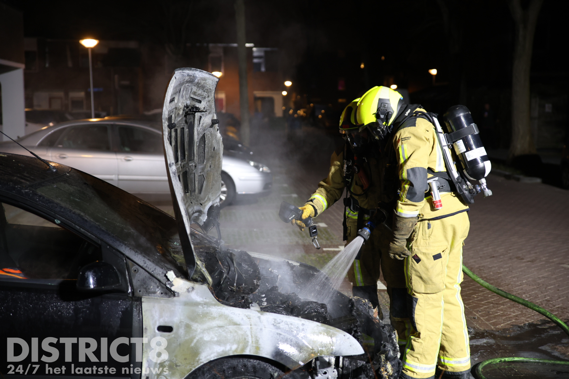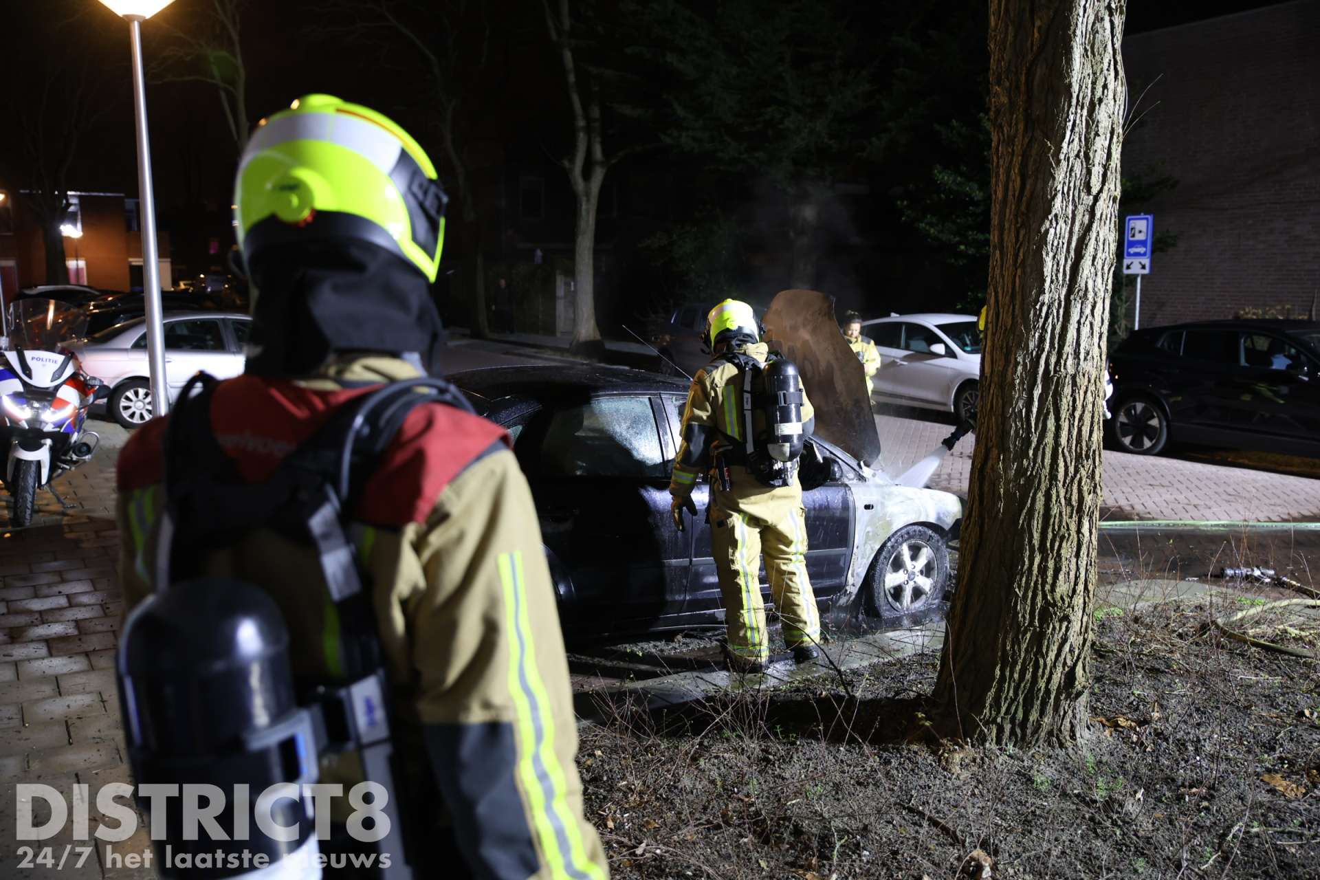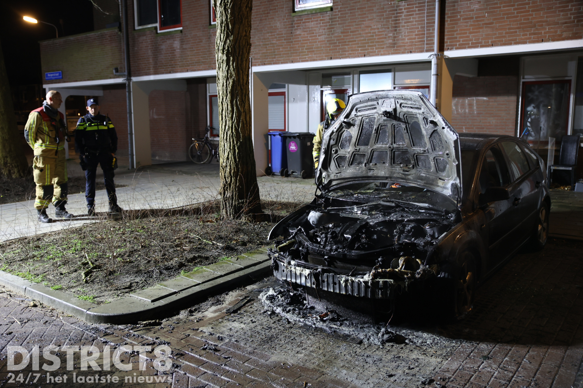 Omwonenden hoorden vannacht een harde knal en keken daarop naar buiten. Ze zagen een auto die aan de voorkant in brand stond en belden direct 112.