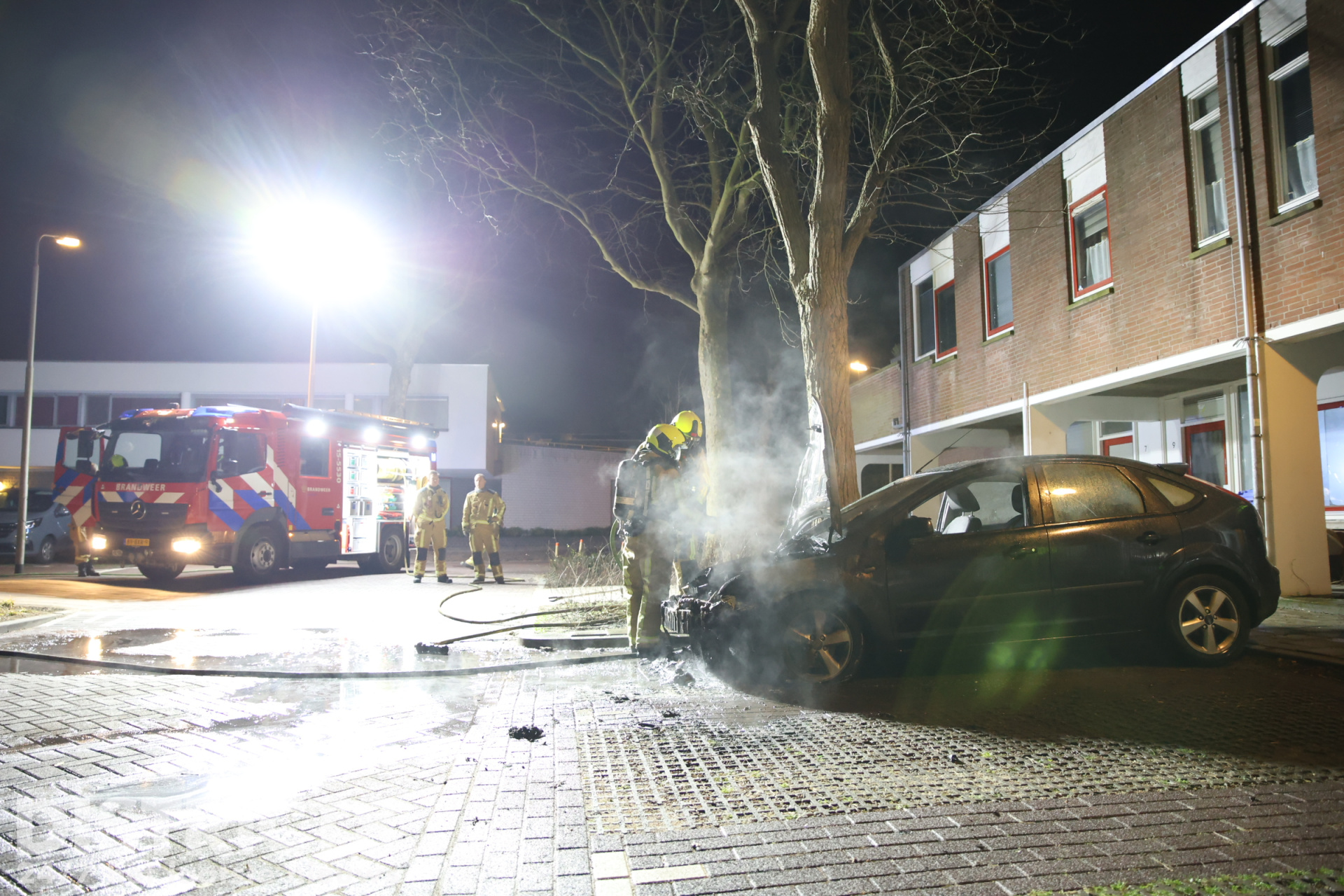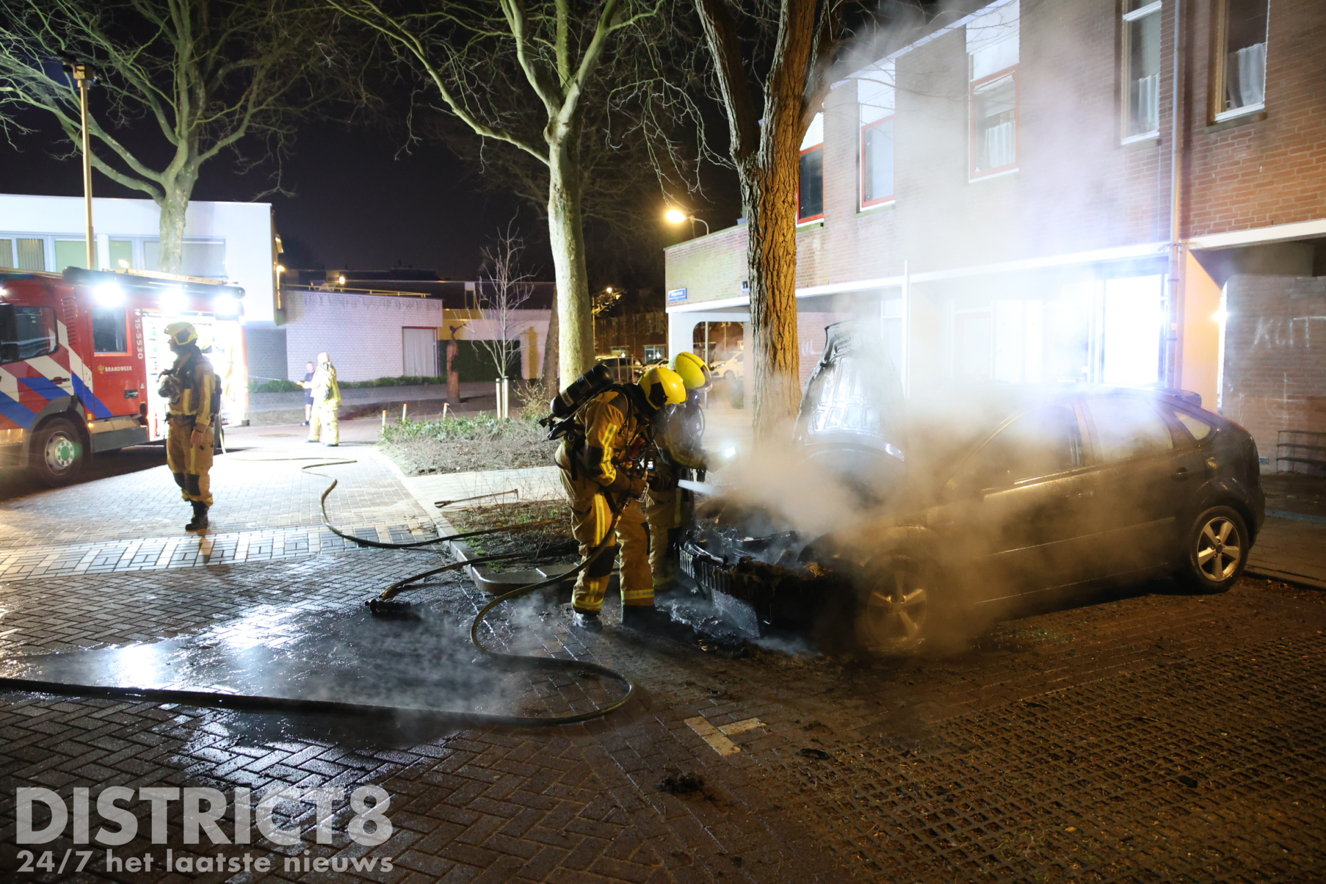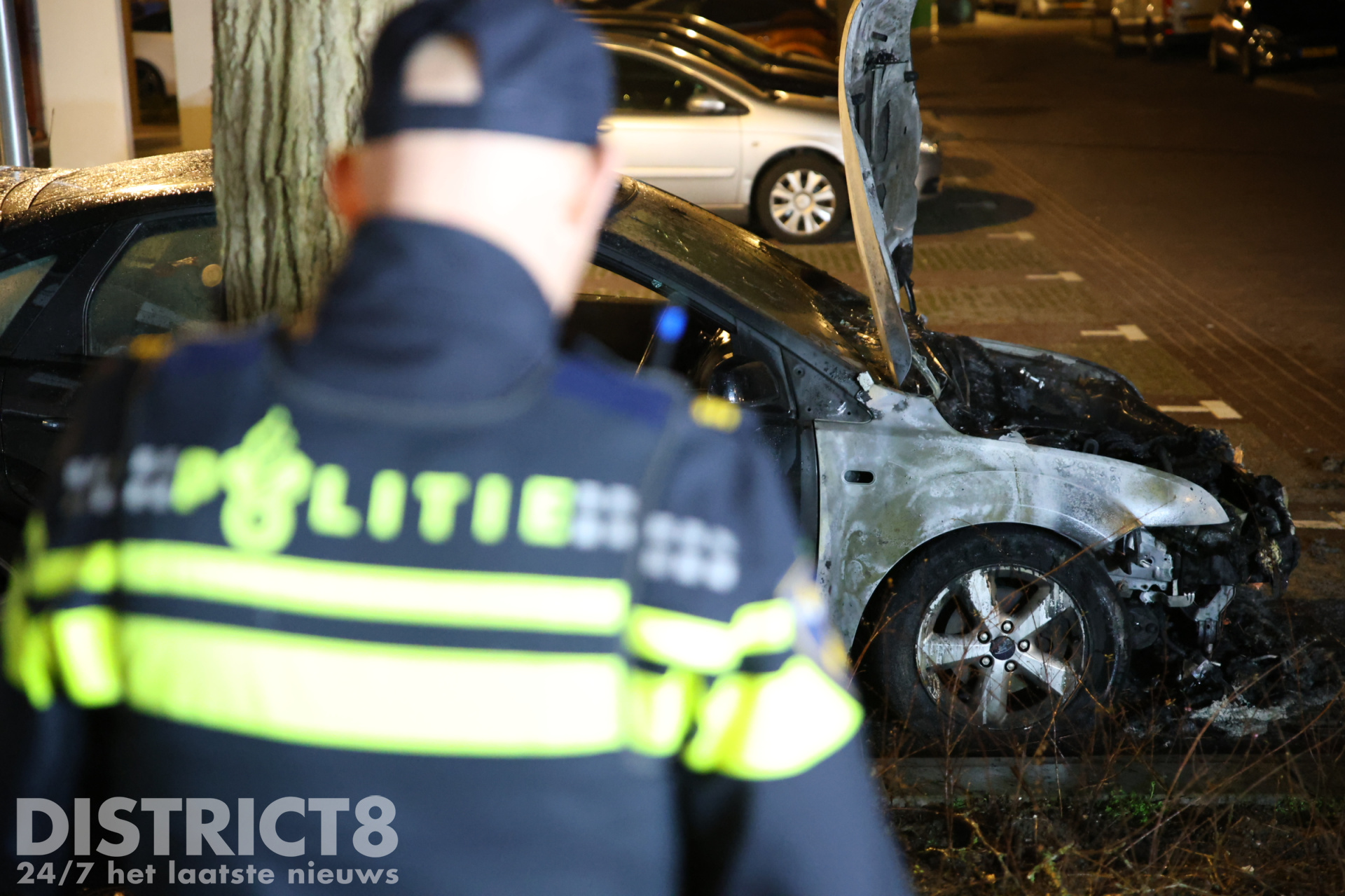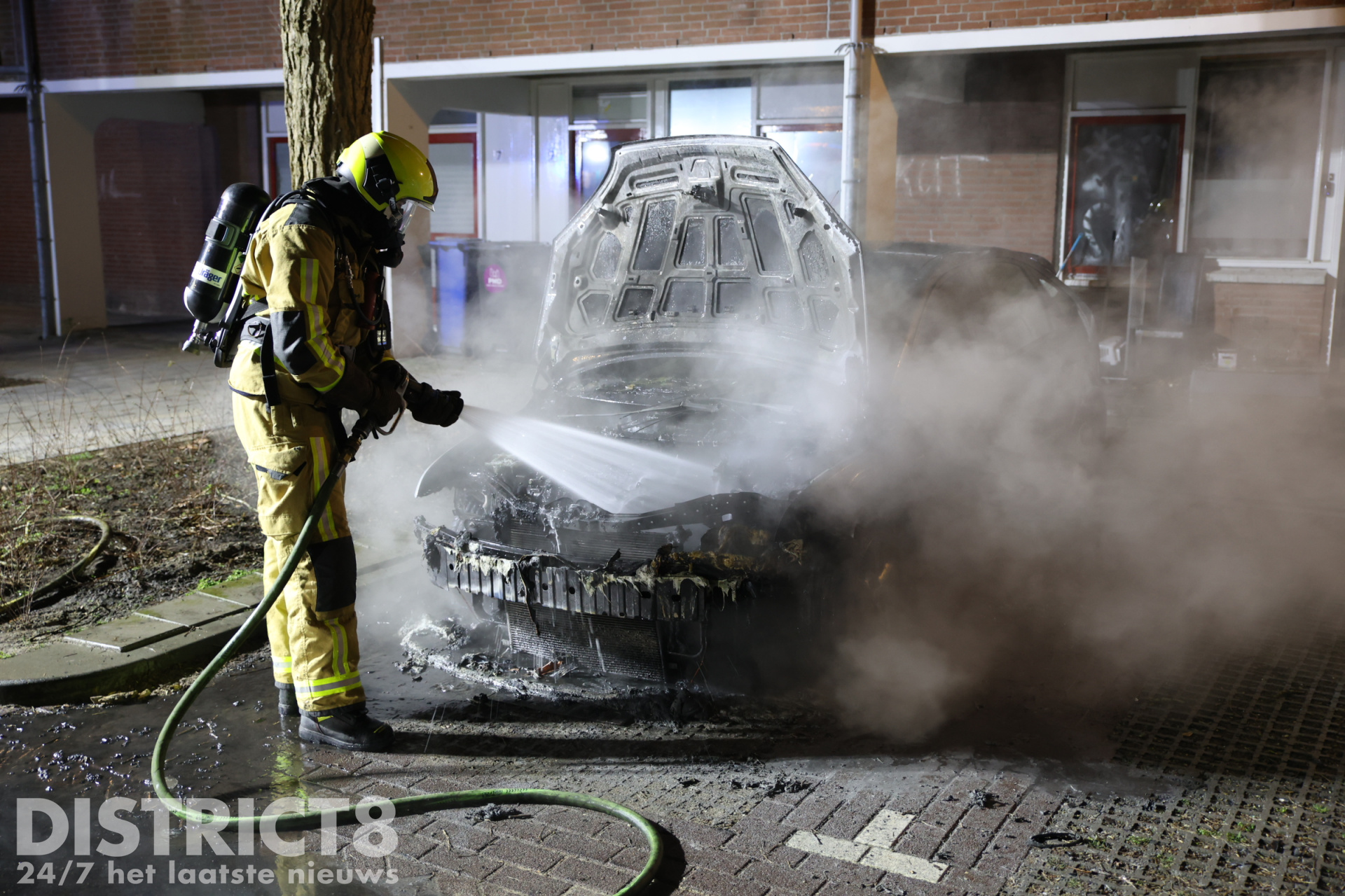 Omwonenden hoorden vannacht een harde knal en keken daarop naar buiten. Ze zagen een auto die aan de voorkant in brand stond en belden direct 112.