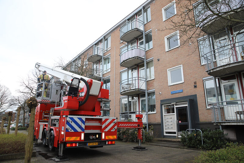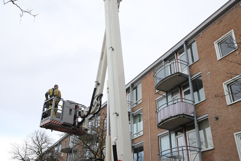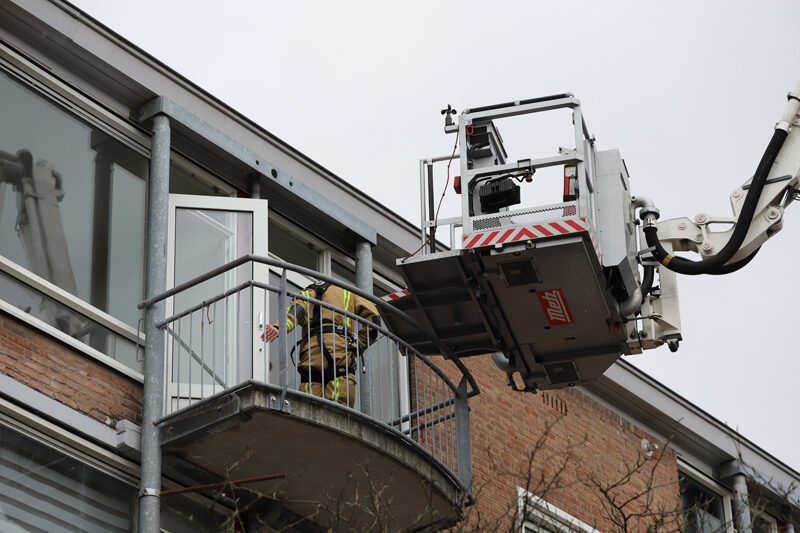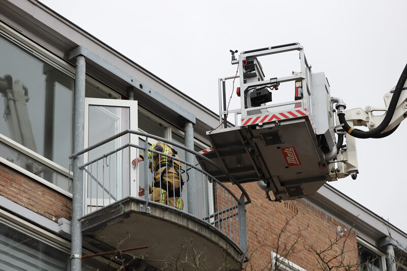 De brandweer kwam zonder spoed ter plaatse met de hoogwerker. Een brandweerman heeft via het balkon de deur weer gesloten.