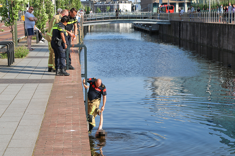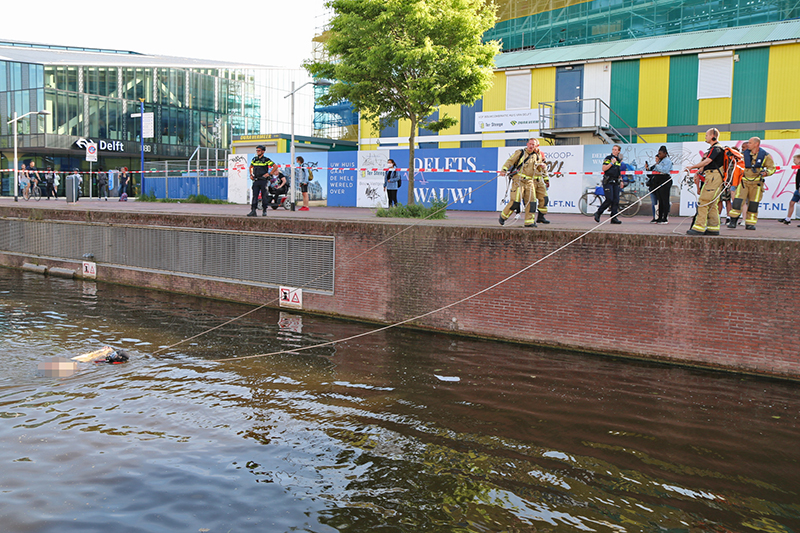 Delft – De brandweer heeft vanavond een man uit water gehaald nabij het station van Delft aan de Houttuinen in Delft.