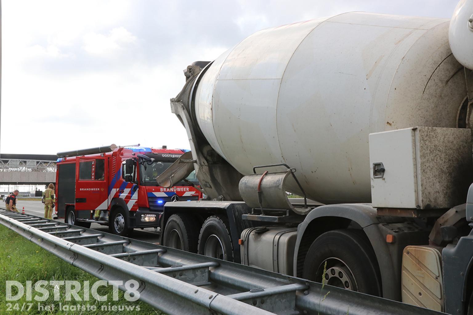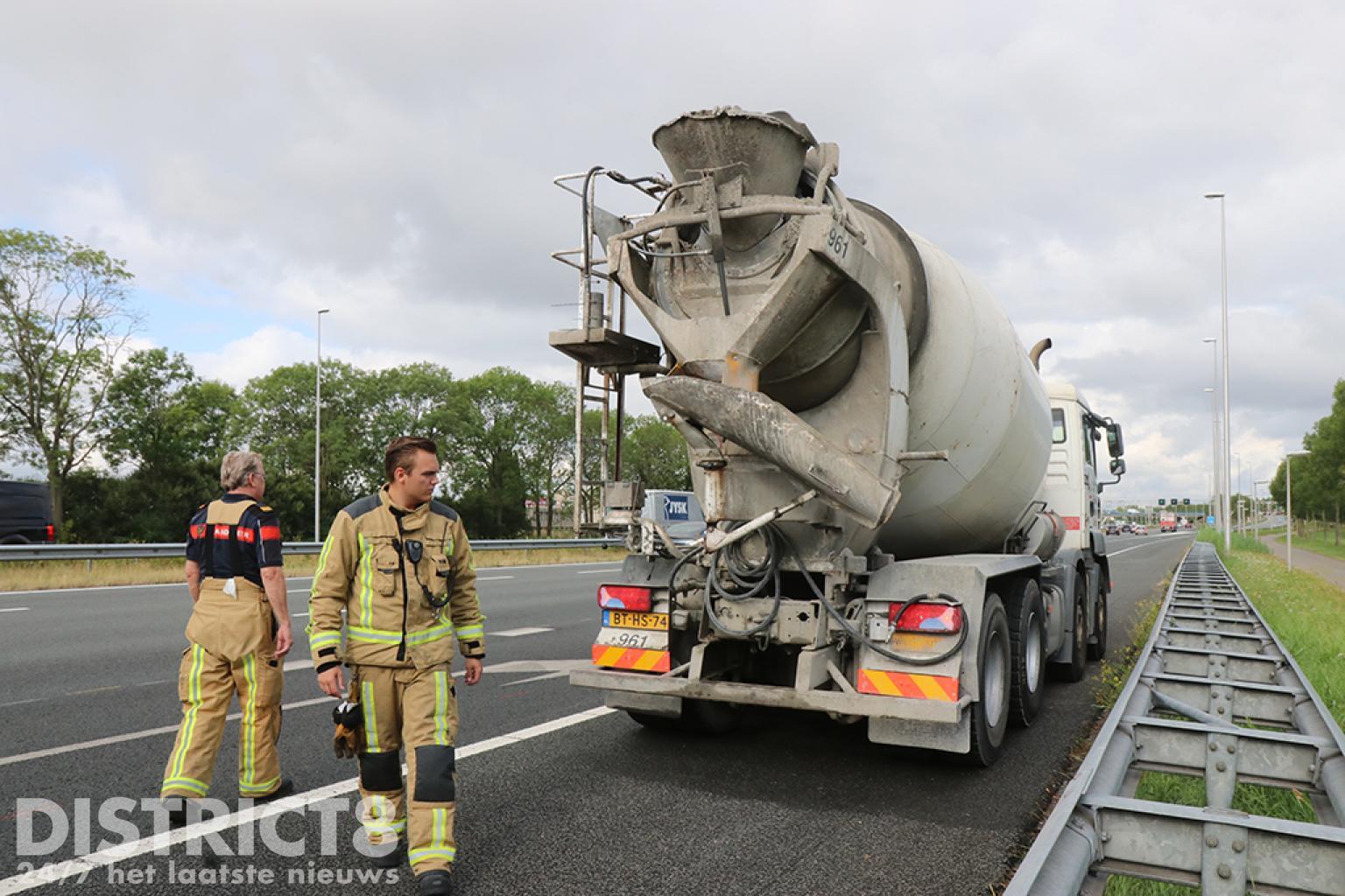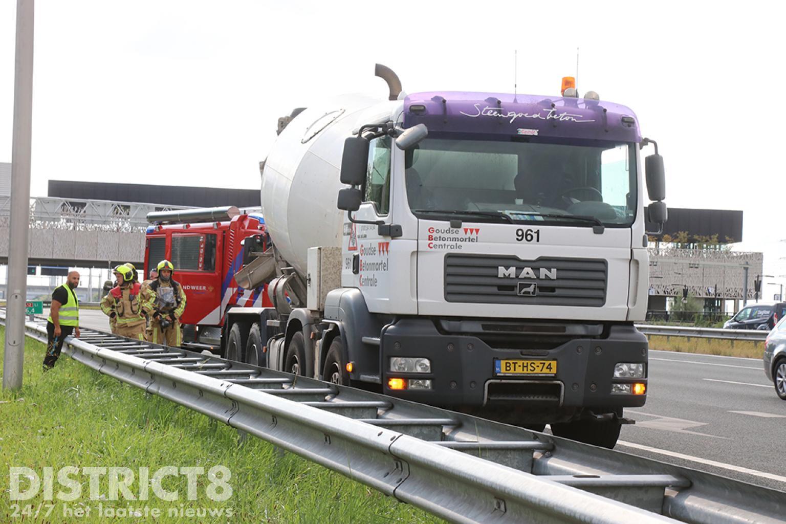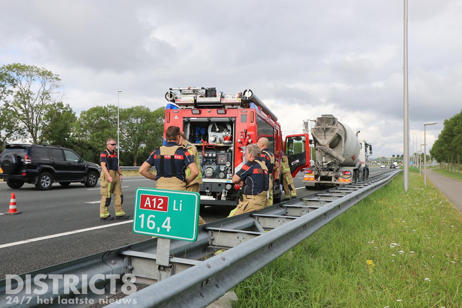 Zoetermeer – Donderdagochtend reed een chauffeur met een betonmixer op de A12 bij Zoetermeer toen hij rook achter zijn voertuig vandaan zag komen.