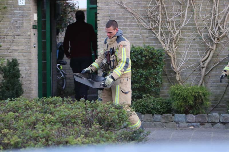 Nadat het brandje onder controle was is de woning geventileerd en zijn alle ramen van de woning geopend. De brandende delen die door het ramoneuren naar beneden zijn gevallen, zijn door de brandweer naar buiten gehaald en in het zand gegooid.